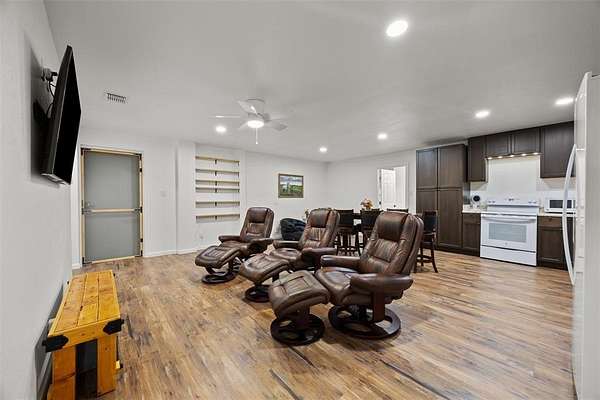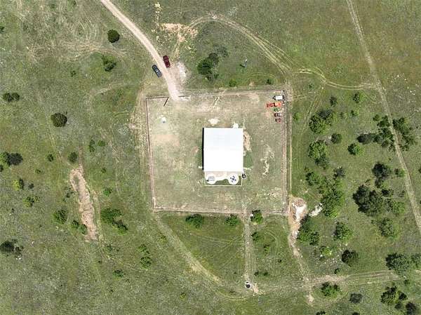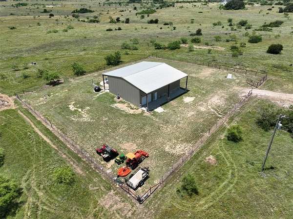 Ultimate Vacation Getaway on more than 20 acres of Breathtaking Texas Views! Escape to your perfect vacation retreat featuring 20 acres and an incredible setup for recreation, relaxation, and self-sufficient living. The heart of this property is a 40x50 steel building with approximately 1,100 sq. ft. of comfortable, climate-controlled living space and another 900 sq. ft. for shop, ATV, and RV storage with RV electrical and septic hookup. Enjoy all the furnishings in the living space! Kitchen features full-size refrigerator, storage cabinets, oven, microwave and beautiful cutting-board topped table with 6 chairs, while the living area comes with TV and furniture. Master bedroom features walk-in closet along with a tornado safe room-gun vault. Bunk room has 4 built-in beds, perfect for guests or family. Laundry room with full-size washer and dryer. Full bathroom features a spacious walk-in shower and cabinet with 2 sinks. Covered back patio with a large picnic table, fire pit, and swing -- perfect for evenings under the stars, roasting smores, and enjoying the hundred-mile view. Water well has 3-stage filtration, water softener, and reverse osmosis for drinking water, plus septic system. Rain catchment system for watering and back-up emergencies has 650-gallon storage tank that overflows into a water trough to attract wildlife. Equipment includes Kubota LS2501 tractor with front bucket and shredder, John Deere D140 riding mower, Kawasaki ATV, American Landmaster TW450 UTV, and 10 ft. utility trailer. Proctor Lake for boating and fishing is only 8 miles away and a municipal airport is nearby. This property is truly one-of-a-kind -- a fully equipped, self-sufficient sanctuary where you can enjoy outdoor adventures, hunting, peace & quiet, incredible views, and all the comforts of home. This could be that vacation home or hunting cabin on your bucket list!