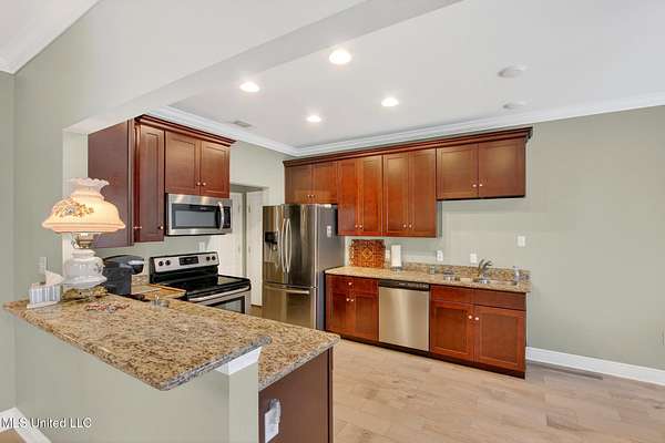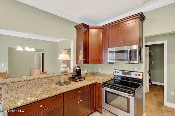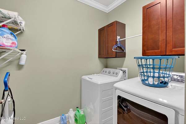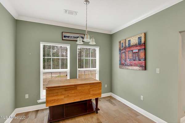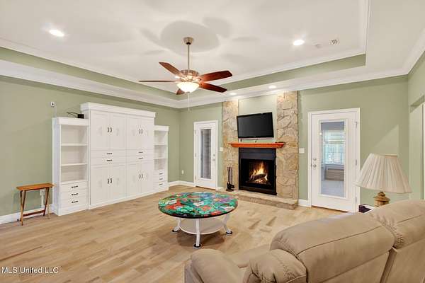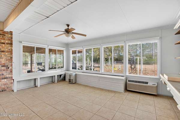 COUTNRY LIVING AT ITS BEST Spacious and well-maintained 3-bedroom, 2-bath split-floor plan home offering approximately 2,375 heated and cooled square feet, situated on a generous 1.6-acre lot. This property features ceramic tile flooring throughout that resembles wood, complemented by crown molding and ceiling fans for added comfort and style. The open-concept layout includes a kitchen that flows seamlessly into the breakfast area and formal dining room, ideal for both everyday living and entertaining. The living room and primary bedroom boast tray ceilings, and the primary suite includes a walk-in closet. The living room has built-in book shelves., that include a Murphy Bed. Additional highlights include stainless steel appliances, washer and dryer to remain, central heat and air, and a cozy wood-burning fireplace. Enjoy outdoor living with a covered patio, a fenced backyard, and plenty of room to roam. The property also offers a 2-car garage, plus a separate garage/workshop and ample storage throughout, making it perfect for hobbies, tools, or extra space needs. This home combines comfort, functionality, and space - Garage floor has been coated in addition many cabinets have been built fo storage. 'Conveniently located about 10 minuets from the Interstate, 15 minuets from Diamondhead, 25 minuets to Bay St Louis and about an hour from New Orleans. - this is must see