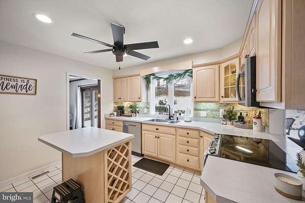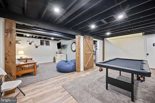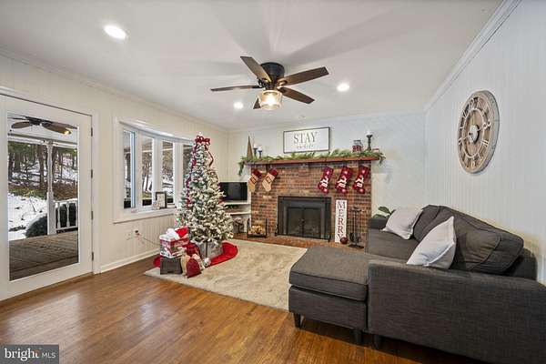 Beautifully maintained and move-in ready 3BR/3BA brick Colonial located on a sprawling lot in the desirable neighborhood of Sykesville. Pull into the expansive paved driveway, park just outside the attached two-car garage, and make your way to the front door into your new home. Step inside a home filled with natural light, original hardwood floors throughout, crown moldings, recessed lighting, and ceiling fans. The main floor living space features an office/mudroom with access into the garage, a full bath with a walk-in shower, a large formal living room open to the spacious dining room, the kitchen, and family room. The family room features a wood burning fireplace with a brick facade and a wood mantel. The kitchen offers plenty of cabinets and countertops, stainless steel appliances including a slide in electric range, a split stainless sink under a window, an island with wine storage and breakfast seating, and a pass through into the family room. Onto the second floor offering a primary sized bedroom, a sizable secondary bedroom, a full bath, and a grand sized owners suite. The primary suite features a walk-in closet and a step down into an oversized en suite offering vaulted ceilings, skylights, and not only a soaking tub or a walk-in shower, there is a wet bar with a mini-fridge, three additional closets, and sliding doors to a Juliet's balcony that overlooks the amazing landscape. The lower level is finished, featuring a possible fourth bedroom with a custom barn door, another finished room ideal as a TV room, a large recreation area, laundry, and storage. From the family room on the main floor, step through sliding doors onto a covered tiled patio featuring a ceiling fan, a beadboard ceiling, and a view of the post and rail fenced yard surrounded by nature. You can access the yard from the garage and the formal dining room. In addition, there is a spacious utility shed in the yard. Home is move-in ready, ideal for any new homeowner, and is located nearby shopping, restaurants, and commuter routes.