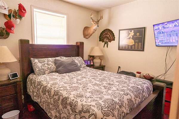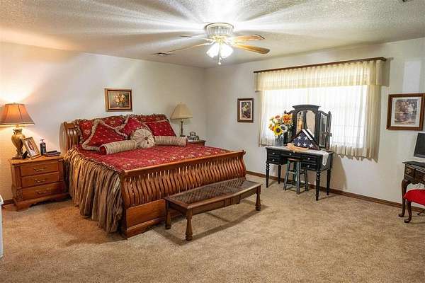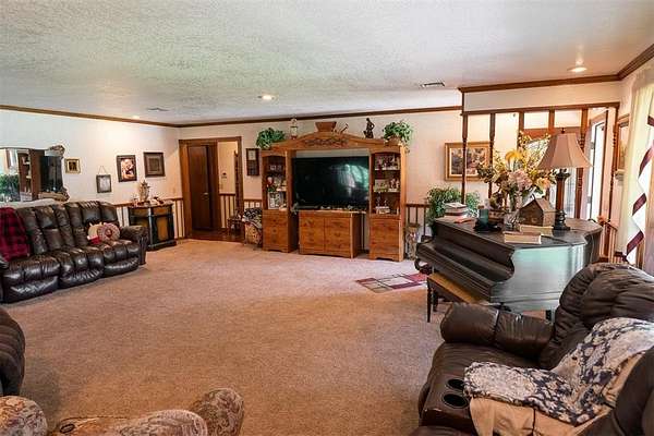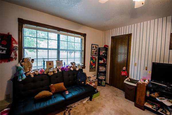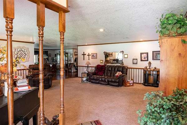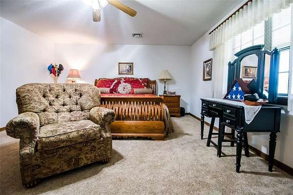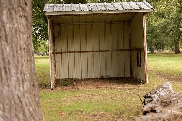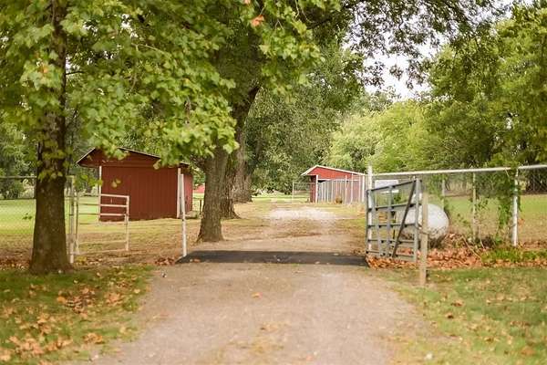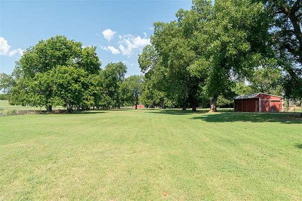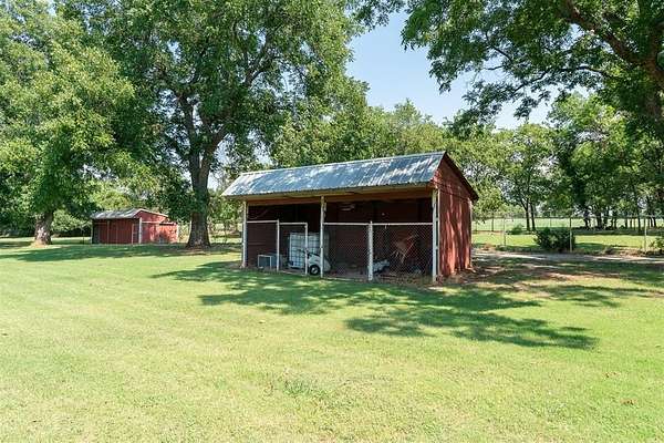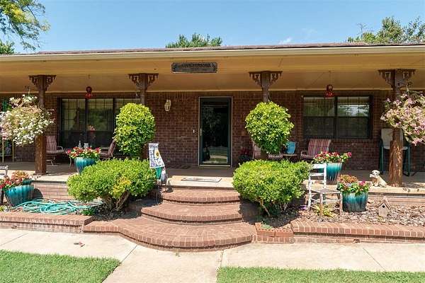 EXCEPTIONAL LOCATION & APPEAL! 15 acres perfect for a few horses! A lane takes you from house to back acreage with overhanging pecan & oak trees, loafing sheds, dirt-floor barn with room for several stalls, plus hay/equipment shed. Land butts up to I-35 providing possible advertisement space. Home was custom built, spacious rooms, open living/dining & kitchen plus sunroom to enjoy beautiful, manicured lawn with a koi pond. An attached carport on back has a guest room with 1/2 bath, a shop, cellar & an amazing view! Roof is high quality with life time guarantee, a Generac is ready for emergencies. A circle drive & vinyl picket fence adds the "warm welcome". Located 1 mile from Walmart, I-35 & other amenities. 2 hours from Dallas & 45 Min. to Norman.