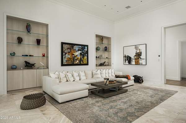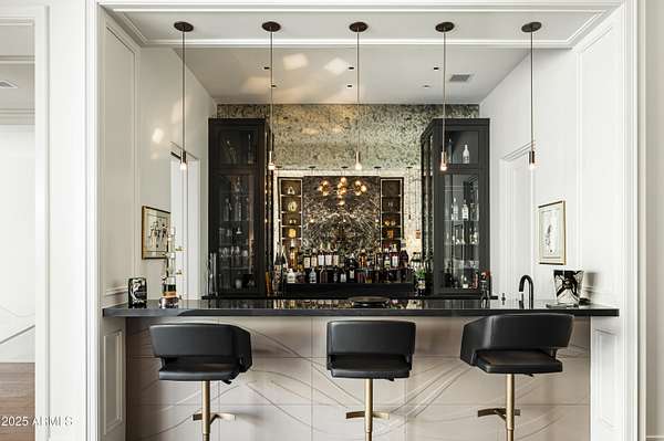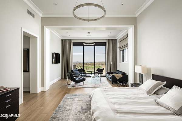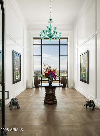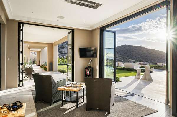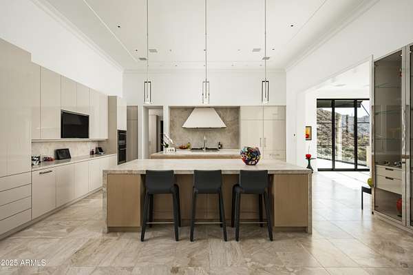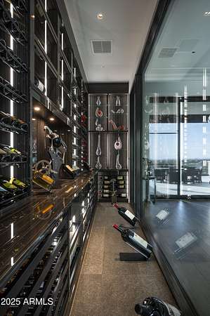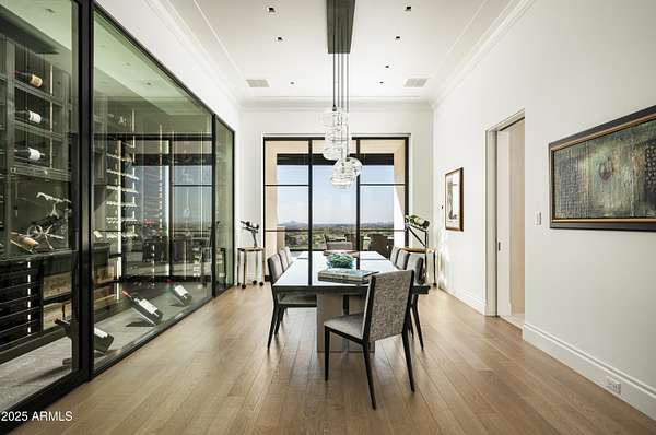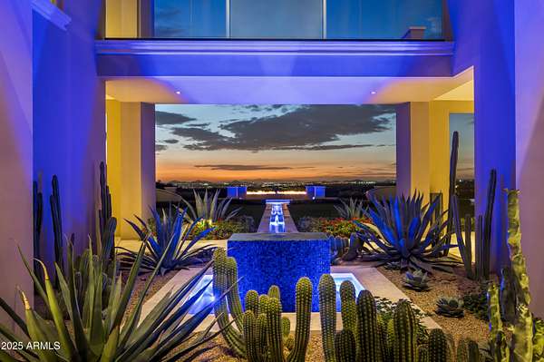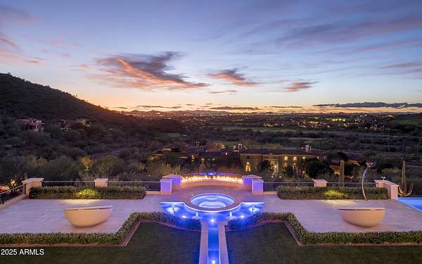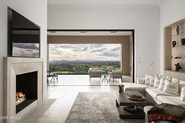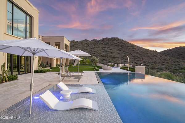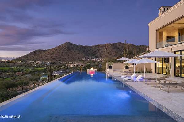A residence of architectural significance and unmatched craftsmanship, this modern estate sits on an extraordinary nearly 13-acre private cul-de-sac lot in the prestigious Horseshoe Canyon of Silverleaf. Designed by PHX Design Architecture and built by Salcito Custom Homes in 2021, it captures dramatic, unobstructed views of the golf course, mountains, and city lights-offering an unmatched level of scale, privacy, and sophistication. The hallmark of the home is its unparalleled indoor-outdoor connection: every room opens directly to the pool and spa terrace, creating a continuous flow that elevates daily living and showcases the beauty of the desert landscape. This architectural feature is truly one-of-a-kind and the defining centerpiece of the home's design. Encompassing 15,163 sq. ft. of livable space and 23,260 sq. ft. under roof, the estate offers 5 bedrooms, 5 full and 4 half bathrooms, two beautifully appointed offices - including a wood-paneled executive study and a curated collection of refined living and entertaining spaces. The Downsview gourmet kitchen features dual islands, Taj Mahal quartzite, Wolf, Sub-Zero, Miele appliances. The formal living room is anchored by an architectural marble fireplace adjacent to a full bar, opening seamlessly to the terraces beyond. The elegant formal dining room offers a full experience- featuring a custom designed, humidified, air conditioned, glass-enclosed Brillante wine cellar and breathtaking view corridors. Additional spaces include a warm and inviting family room with a double-sided fireplace, a state-of-the-art home theater, a dedicated fitness room, and a poolside game/rec room. Premium finishes and materials are showcased throughout: Artitalia wood flooring, Diana Royale stone, custom cabinetry, Rocky Mountain hardware, Western and Loewen window systems, and an Arcadia Custom Accoya entry door. Slab selectionsincluding Athos White, Crystallo Lumix, Egeo Blue Ondulato, Brilliant Black quartzite, and Calacatta Gold suedeare thoughtfully placed to elevate every space with richness and texture. Outdoor living is resort-caliber, centered around a Pebble Sheen infinity-edge pool and an all-tile spa finished with custom Oceanside Muse mosaic glass. Multiple covered patios, terraces, two outdoor fireplaces, a built-in outdoor shower, and an expansive all-season cabana with bar, A/C, heating, retractable glass walls, and automated sunshades create an unmatched environment for year-round entertaining. Technologically advanced and highly efficient, the home is powered by Josh AI whole-home automation, 13 Carrier Greenspeed HVAC units, and includes three laundry rooms, a Celtic elevator, a 6-car garage with a large auto court, and a 2,344 sq. ft. pre-plumbed future flex space above the garage. Privately positioned in one of Silverleaf's most exclusive enclaves, this estate embodies the pinnacle of modern luxuryarchitecturally inspiring, technologically advanced, and crafted with an exceptional level of precision. A true masterwork designed for both grand-scale entertaining and serene everyday living. Silverleaf, located in North Scottsdale, Arizona, is a prestigious guard-gated community known for its luxurious estates, exclusive golf courses, private Club, and stunning desert landscapes. The Tom Weiskopf-designed Silverleaf Golf Course is a highlight for golf enthusiasts. With a blend of Spanish and Mediterranean-inspired architecture, the community offers a high standard of living, including upscale amenities like spas, fine dining, and exclusive shopping. Residents enjoy a harmonious balance between modern luxury and the natural beauty of the desert environment, making Silverleaf a sought-after destination for those seeking an exceptional lifestyle in North Scottsdale.