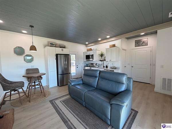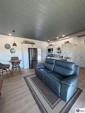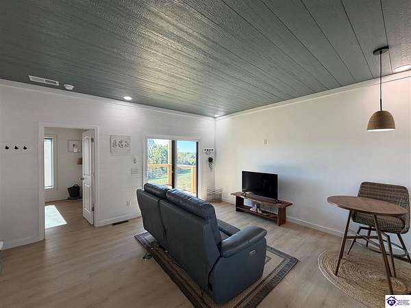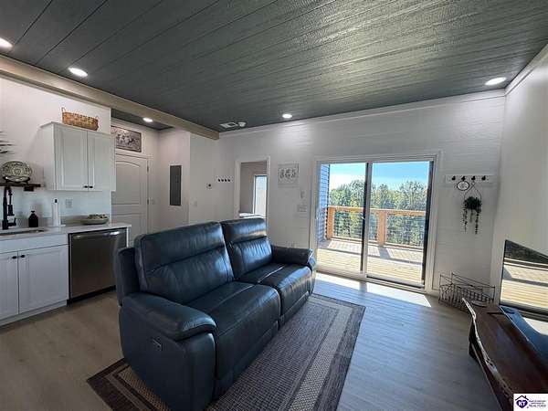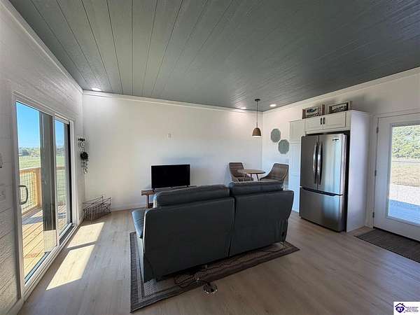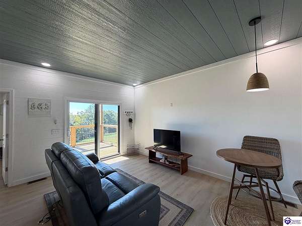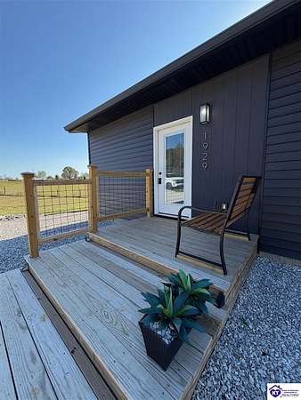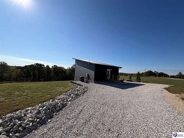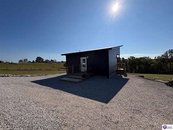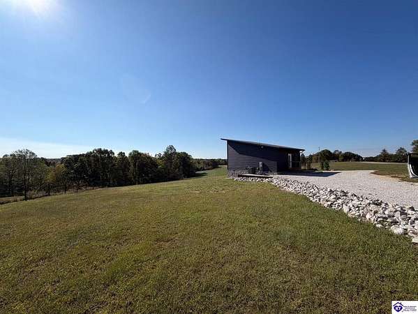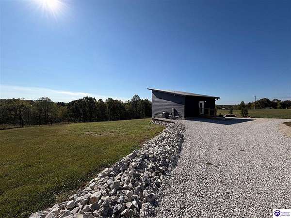 Discover contemporary country living just minutes from Mammoth Cave National Park and Bowling Green! Situated on 7 scenic acres, comprised of three separate lots this striking modern home features bold architecture, expansive windows, and sleek finishes throughout. The open-concept interior is filled with natural light, offering seamless flow between the spacious living area, stylish kitchen, and dining space--ideal for entertaining. Enjoy quiet evenings on the covered porch or elevated deck with sweeping views. Don't miss the must-see bonus attic room! Perfect for downsizing, Airbnb, or a peaceful retreat. Endless potential for outdoor living, gardening, or recreation.