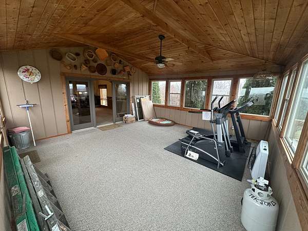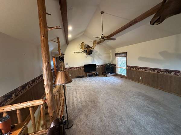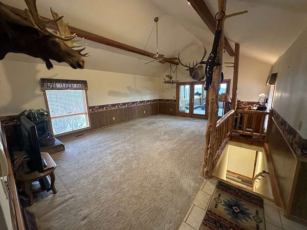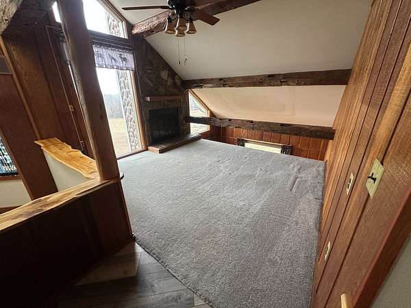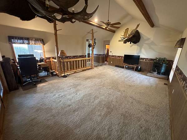 The home is equipped with a geothermal system, ensuring energy-efficient heating and cooling year-round. A historic jail cell for safe storage and a suana for relaxation are tucked away in one of the basements to add to the hidden ammenities. Two stocked ponds sit near the house, ready for fishing and relaxation, while fruit trees and meticulously landscaped grounds add to the charm of the expansive yard.