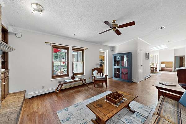 - Breakfast Area, Ceiling Fans, Family Dining Room, Home Office, Kitchen Island, Living Dining Room, Main Level Primary, Multiple Living Areas, Pantry, Skylights, Tub Shower, Utility Room, Walk In Closets
