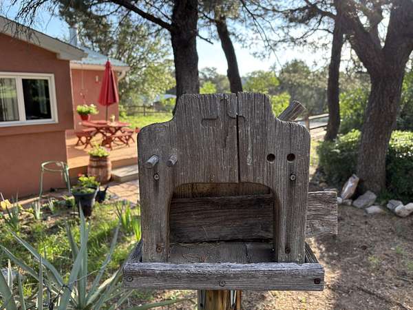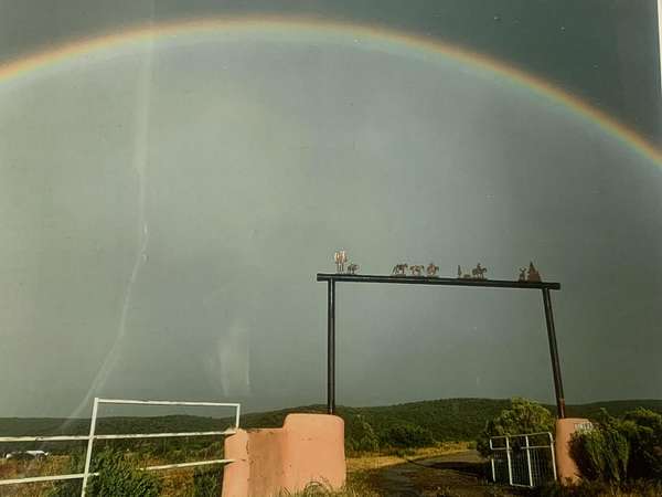 Head East on I-40 from Albuquerque. Exit I-40 at Exit sign 181 , and head east on Highway 333, US Route 66 continuing east. Pass Mountain Valley Rd, then turn right on Barton Rd. heading south. Go past the cemetary, once you are at E Trail, the very next driveway is Barton Road. You'll see the cowbow wrought iron entrance. Turn left and follow the signs. The home will be on your right hand side.