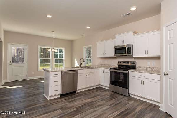 Seller offering $3,500 use as you choose! Welcome home to the coveted Chelsea floor plan with over 2100 beautiful square feet of living space located on almost 3 acres! Once you step inside the first thing you'll notice is the gorgeous electric fireplace complete with a craftsman mantle and subway tile. The spacious living room opens into the dining area and just outside the dining space is a large 10x10 patio, perfect to enjoy those Carolina mornings or evenings. In the kitchen you will find a luxury amount of counter space. Perfect for entertaining! Worried about kitchen storage? No need to be with the large, corner, pantry closet. The primary en suite includes dual vanity, shower, separate water closet, and linen closet. No need to worry about closet space and storage as the secondary bedrooms have spacious walk in closets. This is the one that will check all the boxes!