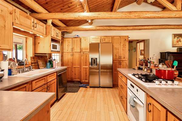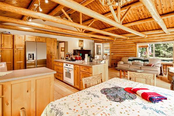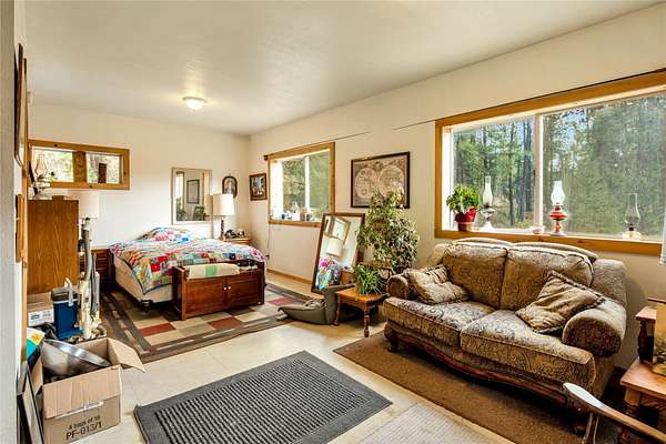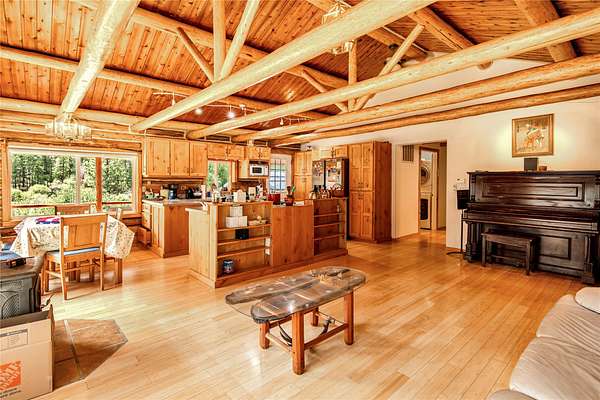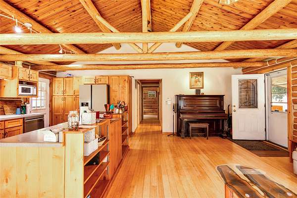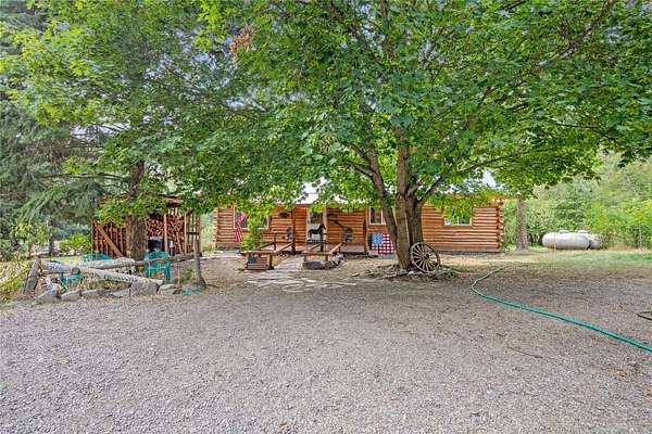 Welcome home to your Montana dream! Nestled on 11 private acres of mountain and meadow with a creek and a pond to boot, this quintessential log cabin offers unmatched rustic charm along with endless options and opportunities. Inside, enjoy the warm, welcoming natural wood finishes and cozy spaces that feel like home from the moment you walk in. Covered front and back porches set a classic tone, and the interior has a wonderfully functional and appealing layout. The open kitchen/living/dining areas are perfect for entertaining or relaxing. Down the hall you'll find a generous primary bedroom with a garden tub, as well as another bedroom and full bath. Outside, garden, orchard, and riparian areas create a uniquely Montana ambience. Two versatile barns, one with a separate apartment and the other with a huge loft area, are ideal for animals, home business, guests, or rental income. Properties like this rarely come available. Schedule your showing now before this Montana gem slips away!