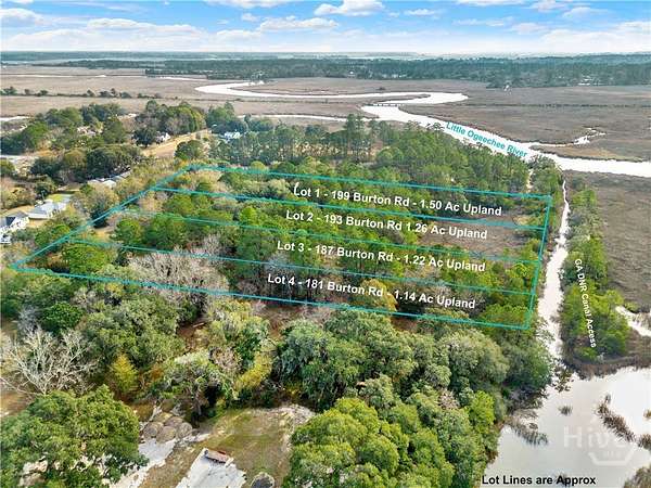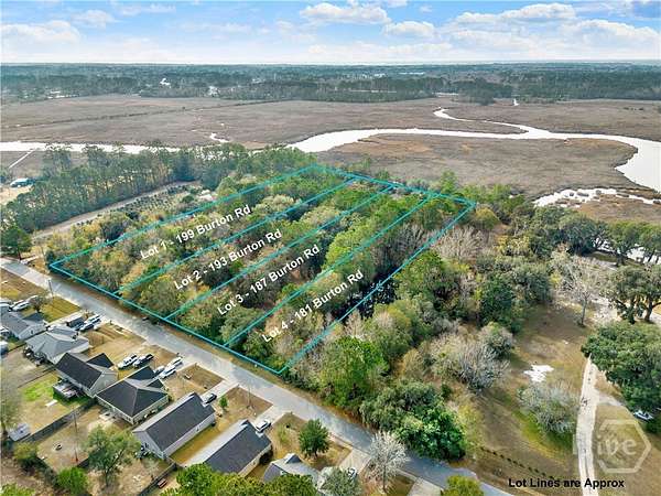 193 Burton Rd is Lot 2 of the 4 Lots For Sale on the Little Ogeechee River and has 1.26 Acres of Upland and holds so much Southern Beauty, it is indescribable. Four Lots Total For Sale - Each one backing up to the beautiful flowing Marshes of the 42 mile long Little Ogeechee River, a Tributary of the Ogeechee River in Savannah, GA. Hundred Year Old Oaks sit on each Lot creating a gorgeous Canopy over this Marsh Front Property and you will find Nature at its Best. Your Family can enjoy this heirloom type Land for Years and Years. The brackish Tidal Marsh is a tranquil nesting place to many, beautiful, migratory Water Birds and Wildlife. You will see and be able to enjoy several Bald Eagles, Red-Tailed Hawks, Blue Herons, Ducks and Owls. There is also a Family of Deer on the Property that enjoy the Marsh, as well. Call for your Private Tour. Front Portion X-500 Flood Plain - No Flood Insurance Required on Build - County Taxes Only. Lot can be further subdivided by Minor Subdivision. One-Time Close loan option available! Ask for details!
