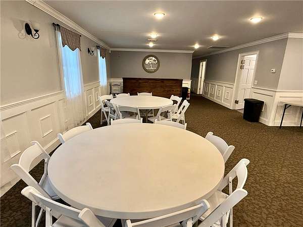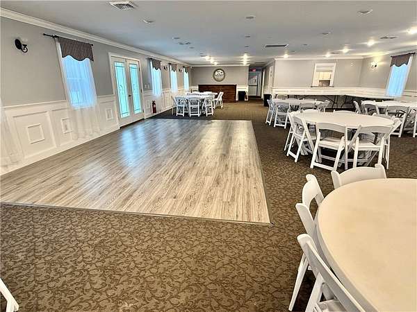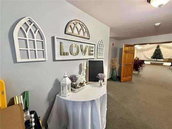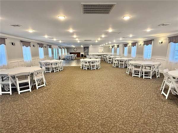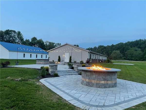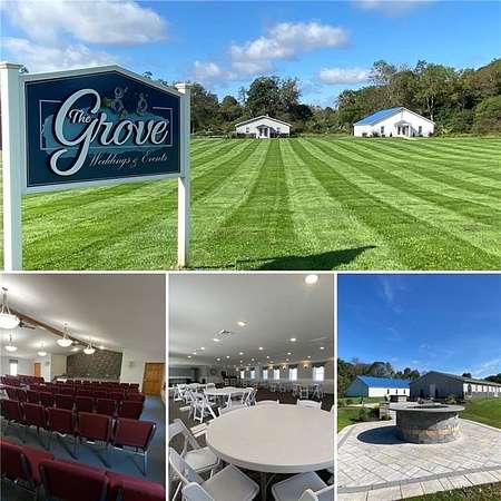 Welcome to THE GROVE, a purpose-built wedding and conference/event center located in a gorgeous Central NY edge of community, 15 minutes from Interstate 88, Cooperstown All Star Village Baseball camp facility, and multiple major hotel chains! Sheltered amidst a grove of mature trees, open meadow, and bounded in back by the historic Butternut Creek, this location is ideal for your destination event! Chapel on premises offers lounge, restrooms, office, and an ideal meeting room with stage, equipped with sound system and seating for up to 150 guests. A short walk right next door opens to your multi-purpose event center, complete with bridal lounge, upscale restrooms, fully equipped kitchen/ service area, and dining area equipped with tables and chairs, dance floor, and direct access to two patio areas! French doors off dance floor to side patio is a natural for outdoor extended bar/service area, and rear patio features a built-in service bar and step-down to fire pit, where the charm of Otsego County shines through! Guests can wander the grounds, view the scenic Butternut Creek, or relax and enjoy the oversized fire pit and take in the natural beauty that is the name-sake of this one-of-a-kind events center known as "The Grove". Bookings for 2026 are on-going. Call for details!