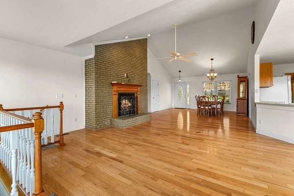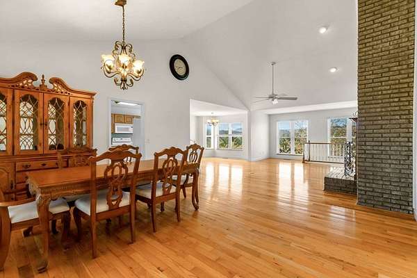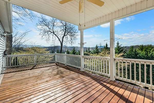 Welcome to your mountain retreat in Franklin, North Carolina! This beautifully maintained 3-bedroom, 3-bath home offers over 3203 square feet of thoughtfully designed living space in the desirable Dowdle Trace community. Step inside to find hardwood floors throughout the main level and a stunning vaulted great room featuring a floor-to-ceiling stone fireplace-perfect for cozy evenings. The main level boasts a spacious primary suite. Downstairs, the basement provides flexible living space ideal for guests, recreation, or a home office, along with a large bedroom with a full bath and ample storage. Enjoy breathtaking long-range mountain views from the screened-in porch or relax on the covered lower deck overlooking a beautifully landscaped property. Situated on a rare double lot totaling approximately 2 acres, this home offers added privacy, space, and future potential. Additional highlights include a 3-car attached garage upstairs with an oversized 1 car garage downstairs, open yard space, and year-round scenic surroundings. A perfect blend of comfort, privacy, and mountain charm-just minutes from town yet tucked away in a peaceful setting.