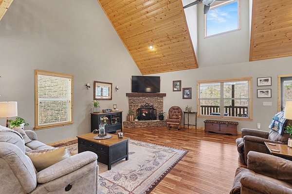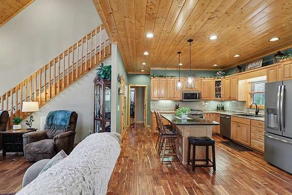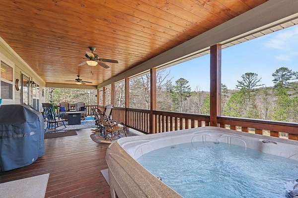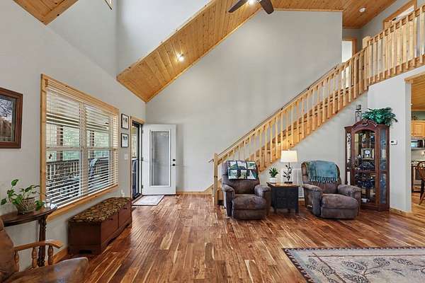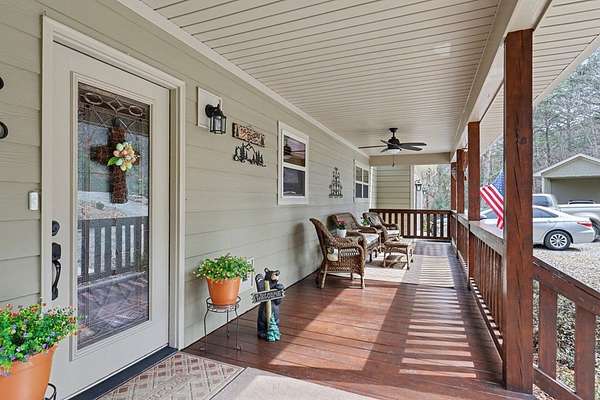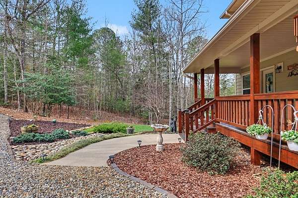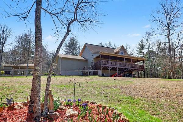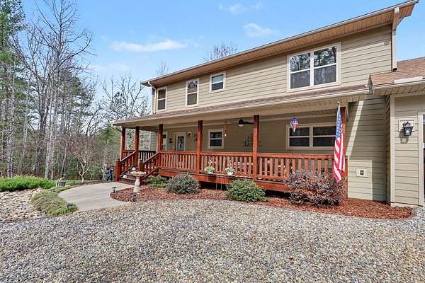 Custom one-owner Craftsman beauty offering 2,099 square feet of thoughtfully designed living space on a stunning 3.81-acre setting with a branch that feels more like your own flowing creek. This like-new home showcases true pride of ownership and features 2 bedrooms, 2.5 baths, a huge loft, and a generous floor plan with large rooms throughout. The interior offers a beautiful blend of wood and sheetrock, creating a warm, inviting mountain feel with just the right touch of rustic charm. The kitchen is well-appointed with granite countertops, custom cabinetry, and stainless steel appliances, perfectly suited for everyday living and entertaining. The main level features a spacious primary suite with a fabulous walk-in closet, along with a full bath, half bath, and oversized laundry room, while the loft provides flexible space for extra sleeping, a game room, office, or could easily be enclosed for a third bedroom. Built with hardiboard exterior and quality craftsmanship, this efficient, well-built home also features a tankless water heater for added energy efficiency and convenience. Step outside to the oversized covered back deck with a gorgeous wood ceiling—this is where you'll spend most of your time relaxing in the hot tub and taking in the private setting, flowing stream, and year-round mountain views. The outdoor space is just as impressive with a fire pit, garden beds, fenced area for your favorite fur-baby, and beautifully laying land surrounded by mountains. Great parking for your boat and just minutes to Lake Nottely for fishing, boating, kayaking, and swimming! Additional features include an oversized two-car garage, circular driveway, ample parking, 6x12 storage shed, and covered RV parking complete with 30-amp electrical and septic hookup, with the option to easily add a water spigot. This is mountain living at its best—peaceful, private, and perfectly designed for enjoying every season.