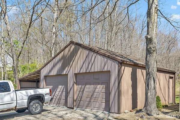 Welcome to your own slice of scenic Brown County paradise! Nestled on 3 breathtaking acres, this charming cedar-sided home offers million-dollar views both front and back, truly a rare find. Whether you're looking for a full-time residence or the perfect weekend getaway, this property delivers the ideal blend of comfort, privacy, and natural beauty. This 2-bedroom, 1-bath home is full of character and functionality, featuring a spacious 24x24 detached two-car garage with an additional lean-to for extra storage. Step outside and enjoy your private pond, creating a peaceful setting that captures everything people love about Brown County living. Major mechanicals have already been updated, including a water heater, furnace, and A/C compressor, all just 3 years old, plus a durable metal roof for added peace of mind. Conveniently located just minutes from Nashville, Indiana, you’ll have easy access to local shops, dining, and entertainment while still enjoying the tranquility of the countryside. Opportunities like this don’t come along often, schedule your showing today and experience the beauty for yourself!