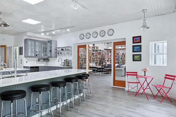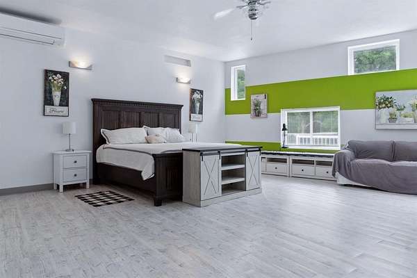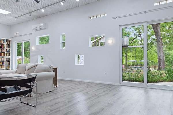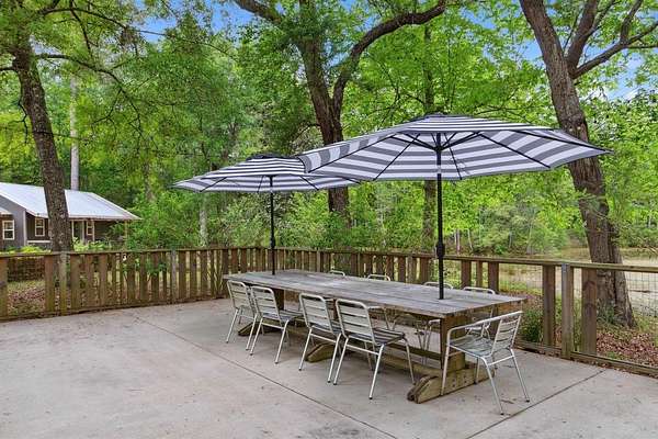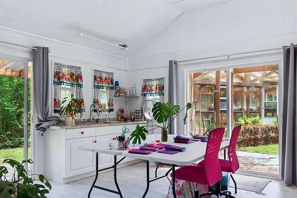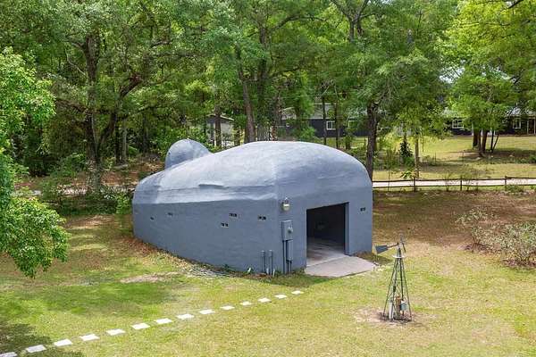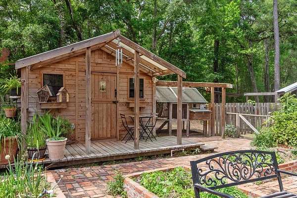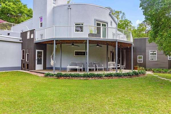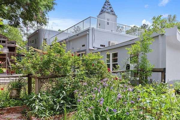 Introducing a breathtaking fusion of modern convenience and medieval charm nestled in the heart of the woods. This meticulously renovated 9,848 square foot architectural marvel boasts a captivating design, featuring uniquely sized windows and curving walls that exude artistic allure at every turn. Step inside and experience the epitome of luxury living. The main building offers a seamless blend of functionality and elegance, with a spacious kitchen offering expansive views, a library capable of housing 10,000 books, currently fill with about 6000 books that convey with the library. The ensuite bedrooms provide unparalleled comfort and privacy. The master bedroom is situated on the upper level, offering ample space and featuring a generously sized walk-in closet and two bathrooms. It provides direct access to the expansive 2000-square-foot rooftop patio, enhancing the living experience with outdoor leisure opportunities. Stay productive in the spacious office with large soundproof glass providing all the natural light, where creativity thrives, or use the spacious room as an additional bedroom. Discover hidden realms within the office- secret rooms! Adding an element of mystery to this home, a secret room leading to the most entertaining room in the house, the movie room!Entertainment knows no bounds within the sprawling 2,500 square-foot movie living room, complete with its own kitchen, bar,laundry setup, and bathroom for seamless hosting. Need extra space there is a cozy in-law suite/cottage in the garden equippedwith a full bathroom, kitchenette and mini-split. Outside, the grounds unfold like a verdant oasis, with a picturesque 1/2 acre pondwith patio and dock. Outside dinners are perfect by this serene pond on the patio furniture. Explore the outbuildings, including,chicken shed/potting shed, mushroom shed, Hugelkultur Garden beds, and greenhouse, each a testament to the estate'scommitment to sustainable living. Organic gardens include pineapple guava, loquat, black raspberries, mulberries, pears, peach, paw paws, persimmons, pomegranates, figs, hazelnuts, coneflowers, agapanthus, wildflowers, azaleas, spirea, confederate rose, abelias, and so many more. An abundance of woodland, adorned with a tranquil creek meandering through its midst. Parking is a breeze with 2 different carports and a new steel 3-bay detached garage and workshop combo. An additional concrete garage, shaped like a majestic whale, adding a touch of whimsy to the property's charm for extra storage. Experience a lifestyle of unparalleled luxury and artistic inspiration where modern living harmonizes with the timeless beauty of a medieval castle, with nuggets of history still on the property through books, sculptures, and artifacts. Fiber Optics are available.