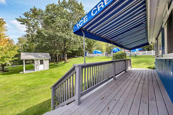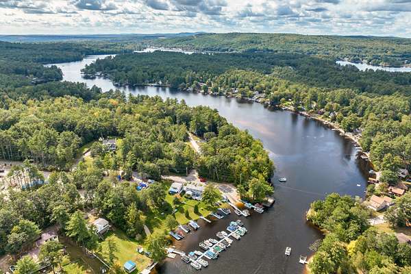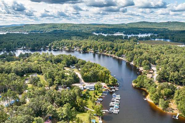 Set at the natural channel connecting Northeast Pond, Milton Depot Pond, and Town House Pond, New Bridge Marina is one of the most recognized waterfront operations on the Maine-New Hampshire line, and one of the rarest properties to come to market on the Milton Three Ponds system. Three distinct assets, one transaction: approximately 13 acres of waterfront land with 300+ feet of direct frontage; a six-bedroom, four-bath colonial with a granite kitchen, gas island cooktop, double wall ovens, 1933 brick fireplace, four-season sunroom, formal dining room, multiple living areas, rear entertaining deck, and a second-floor balcony looking directly over the marina and open water; a full-service marina business with 35+ slip rentals and an active waiting list. The Blue Canoe Café operates from its own purpose-built building -- fully equipped commercial kitchen, Gifford's Ice Cream, Atomic Coffee Roasters, and a canoe mounted on the roof peak that customers spot from the road. The marina runs a two-sided fuel dock, pontoon and fishing boat rentals, canoes, kayaks, and paddleboards with delivery to nearby lakes, mechanical repair, winterization, and dry storage. A brand-new steel service building with finished office and reception handles year-round operations. Picnic tables line the waterfront lawn. Slips are full every season. Milton Three Ponds spans over 1,200 acres and keeps a loyal, returning customer base coming back season after season. For qualified buyers, the detailed financials under NDA tell a compelling story. This operation has delivered strong, consistently growing returns for multiple consecutive years and pencils cleanly to a meaningful cap rate at the asking price -- a real, serious day-one income opportunity whether you plan to live on-site, install a manager, or use the residence as a high-end seasonal rental alongside the operation. Easy drive to York, Kennebunk, Ogunquit, and New Hampshire's lakes region. Properties like this do not come back to market