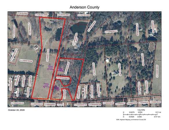 15+ acre parcel is absolutely picturesque from the drive down the gravel road easement to the cul de sac setting with multiple ponds. Country like setting is a short drive to local businesses and situated in Anderson County District 5 schools. Fields are divided into various fenced and gated parcels with barns and buildings throughout. Public water has been run to pastures and well provides to livestock barn. Variety of storage buildings; from 3 sided hay barn w/ lean-to , multiple enclosed metal and pole barn. Open space gives many options for future single home placement or potential subdividing for multiple homesites. Zoned R-20, public utilities available and would require perc test(s) for septic installation.