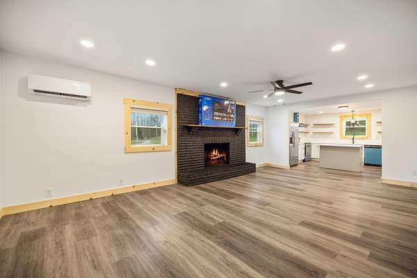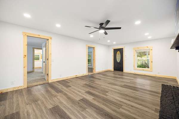 Remodeled and privately gated, this charming ranch-style home sits on a picturesque 2.96-acre tract of unrestricted land. The residence features two spacious bedrooms, two full bathrooms, a dedicated laundry room, and an inviting open-concept layout. The family room and dine-in kitchen-complete with a central island-flow seamlessly together and are anchored by a beautifully handcrafted wood-burning fireplace. The property also includes a versatile storage building, ideal for a workshop, equipment storage, or livestock needs. In addition, a separate one-acre homesite is already equipped with utilities, offering excellent potential for a new construction or manufactured home. Surveyed acreage provides flexibility for a variety of residential or agricultural uses.
