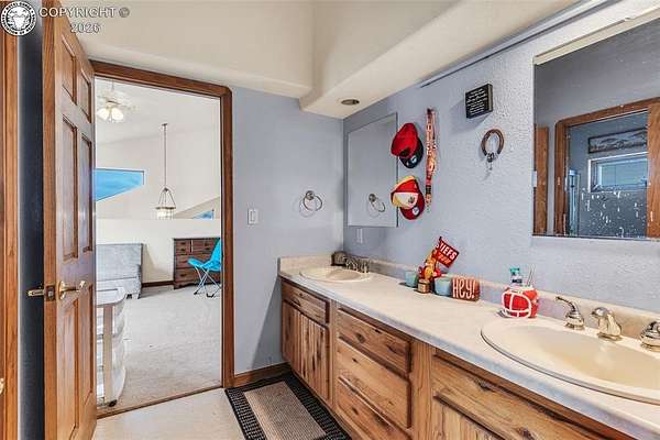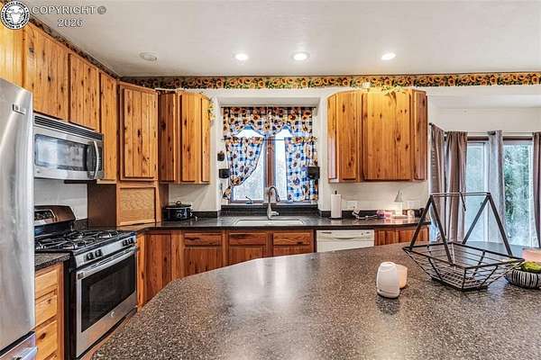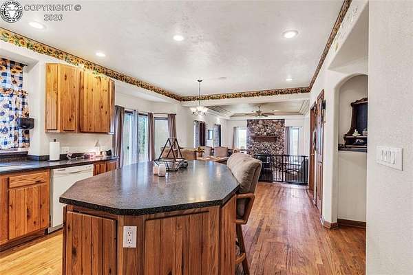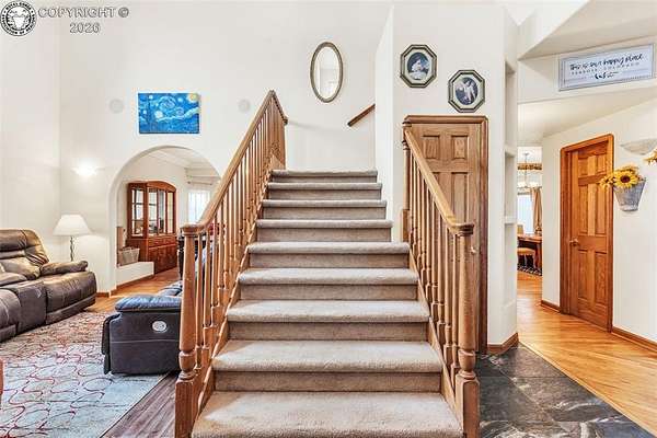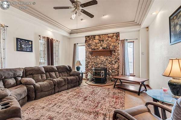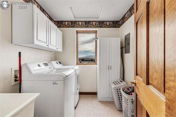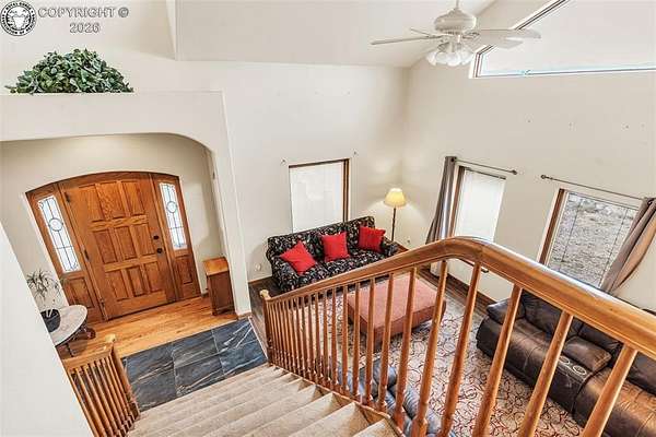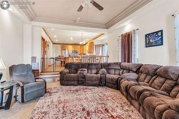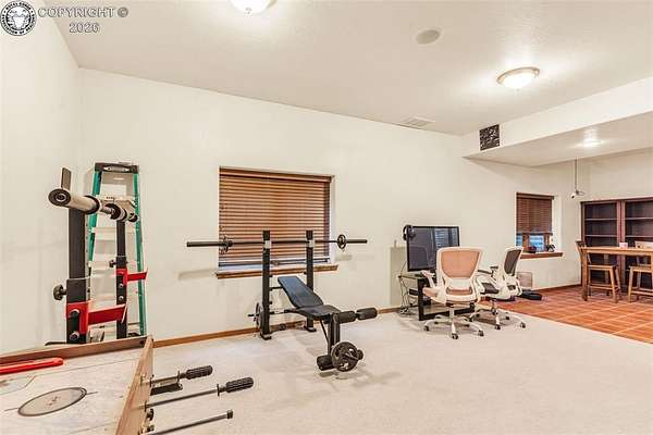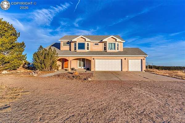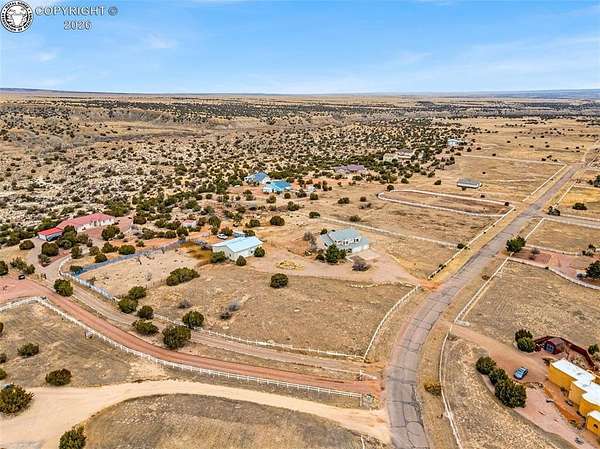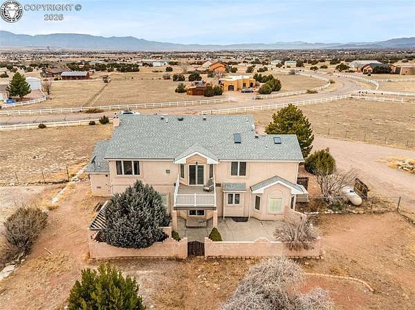 Package Deal - Lots 6 & 8 | 6.21 Acres | Top Rail Ranch An exceptional opportunity to own a truly custom-built home offered as a package with both Lots 6 & 8, totaling 6.21 acres in the desirable Top Rail Ranch. Designed for comfort, functionality, and wide-open living, this impressive property blends luxury finishes with space for horses, hobbies, and breathtaking Colorado views. The expansive home features 4 bedrooms, 3.5 baths, and an attached 3-car garage, complemented by a detached 32' x 48' shop with an additional 16' x 48' covered horse stall area-perfect for equestrian or workshop needs. Inside, you'll find a one-of-a-kind custom interior with soaring vaulted ceilings, slate and hardwood floors, and beautifully stained solid wood doors and trim throughout. Large bay windows flood the home with natural light while showcasing stunning mountain views, sunrises, and sunsets. The open kitchen is ideal for both everyday living and entertaining, offering solid wood cabinetry, Corian countertops, a large prep island, and a cozy breakfast area. Additional main-level highlights include a formal dining room, a spacious family room with a warming pellet stove, and a private office, perfect for working from home. Upstairs, retreat to the impressive 13' x 33' primary suite, featuring a three-way gas fireplace, expansive windows, a private sun deck, and a huge walk-in closet. The five-piece primary bath includes double vanities and an inviting jetted spa tub. The lower level offers a large open recreation room ideal for entertaining, a separate exercise room, and an additional bedroom and full bath, providing flexible living space for guests or family. The additional lot enhances the value even further with a 130' x 260' riding arena and a paid Penrose water tap, making this a rare and versatile property. This is a unique chance to own acreage, luxury, and functionality-all in one remarkable package.
