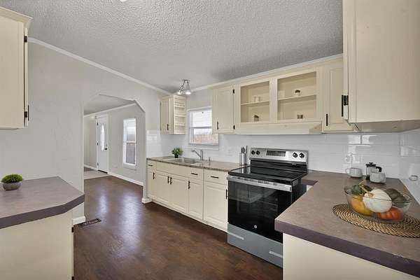 The renovated kitchen offers painted cabinetry, updated countertops, subway tile backsplash, and ample storage, opening to the dining area. Ideal for everyday living and entertaining. Spacious bedrooms provide flexibility for family, guests, or a home office. Both bathrooms have been refreshed with contemporary finishes.