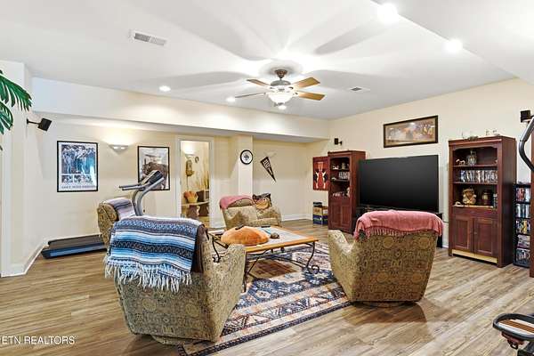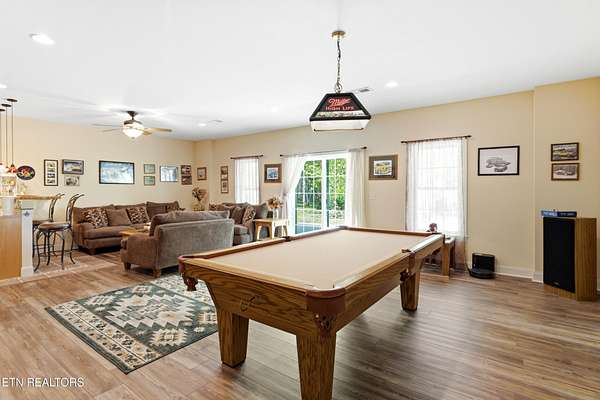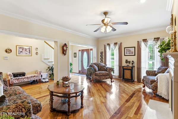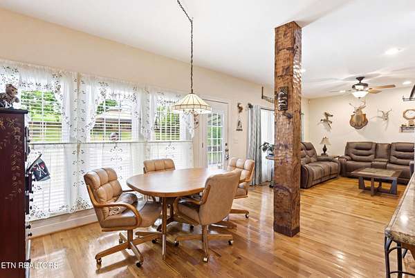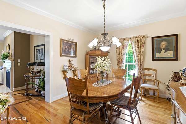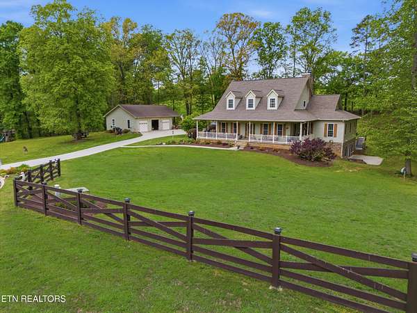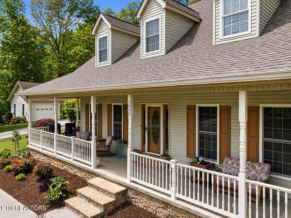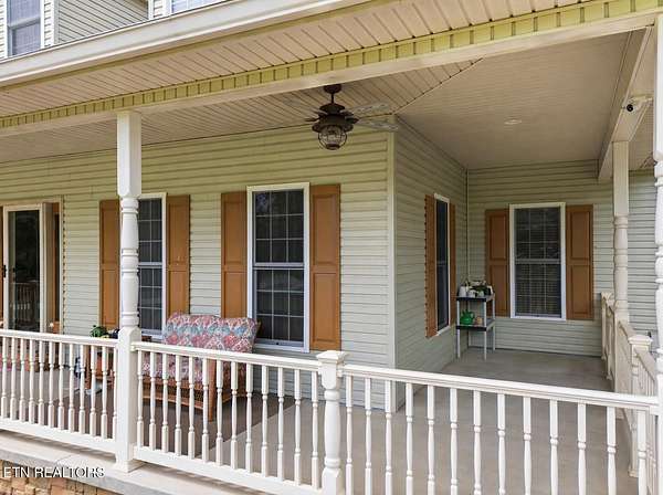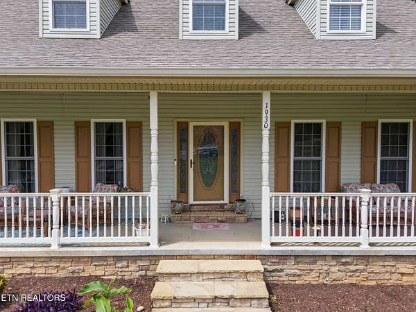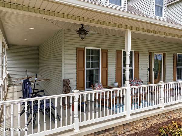 The inviting wraparound front porch sets the tone for the entire home--offering the perfect place to take in peaceful East Tennessee sunrises, enjoy quiet mornings with coffee, and soak in the natural beauty that surrounds the property. It's a space designed for slowing down and appreciating the setting, while still offering a warm and welcoming entrance for guests.
