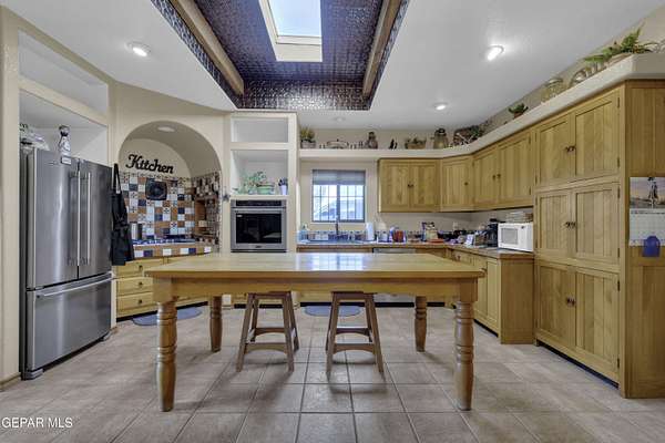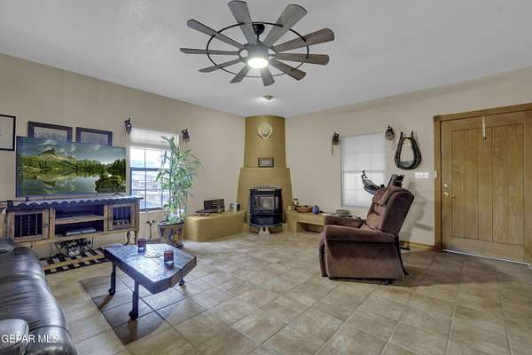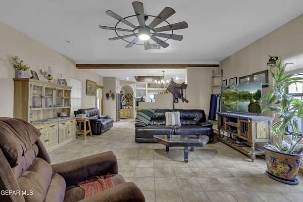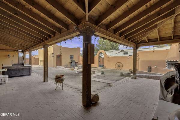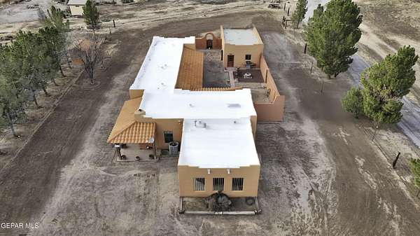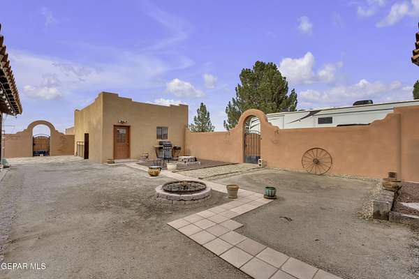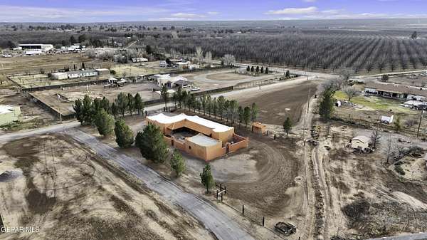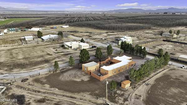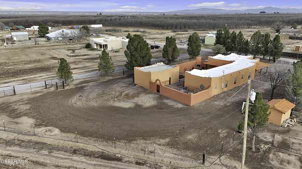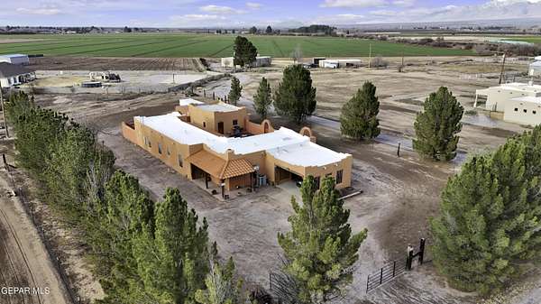 Experience the ultimate Mesilla Valley farmstead at 1930 San Jose Rd. This 2-acre hacienda is a dream for farming families seeking both productivity and peace. Water is key: the property boasts EBID surface rights, community water, and a irrigation well ready for restoration. The flat, fertile land is ideal for crops. The home exudes Southwestern charm with vaulted wood-beamed ceilings, Saltillo tile, and a kitchen featuring a large prep island and tin style ceiling. Designed for family, the private brick courtyard is an entertainer's oasis, complete with an outdoor kiva fireplace and string lights perfect for gathering under the stars. Farmers will appreciate the detached workshop and ample room for trailers. Surrounded by mature trees, this estate offers the space a family needs to grow and the infrastructure a farm needs to thrive. A rare La Mesa gem!
