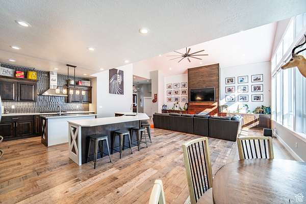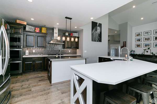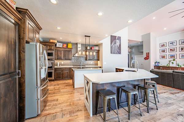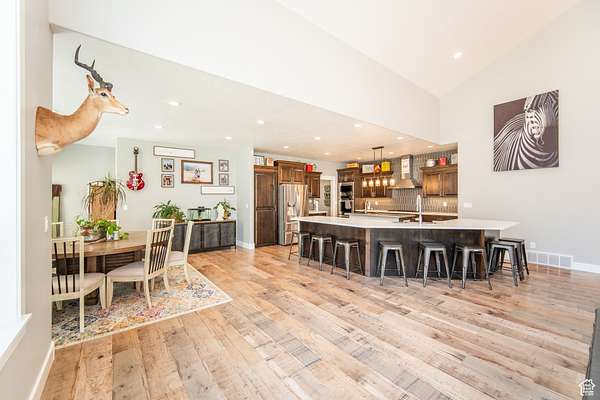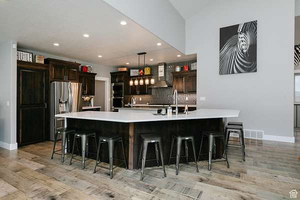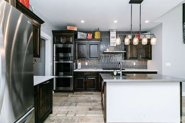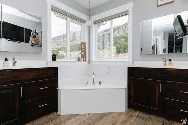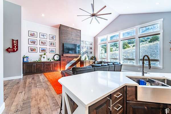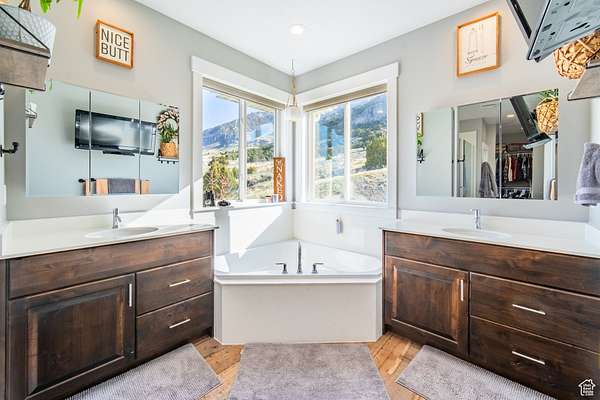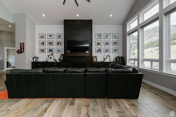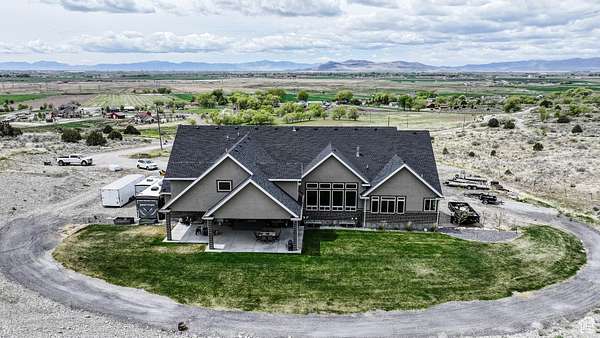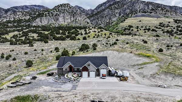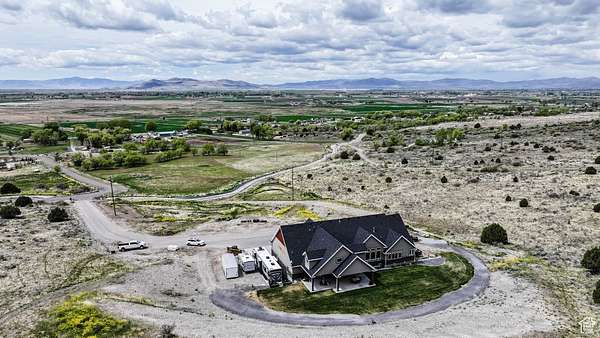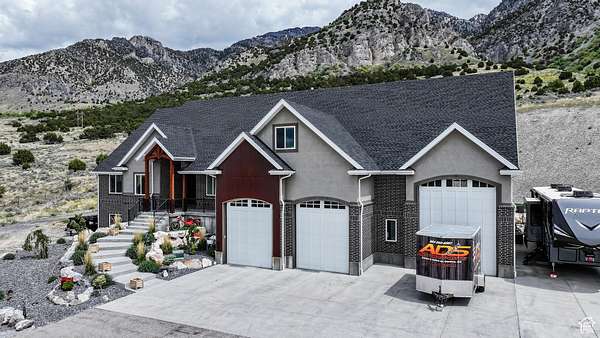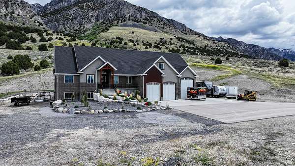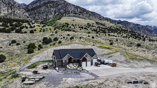 Nestled beneath the breathtaking cliffs of the Wellsville Mountains, this home is perfectly positioned to take in both sweeping valley views and dramatic mountain backdrops. Whether you're soaking in the scenery or enjoying the crisp mountain air, the setting invites you to linger outdoors. Inside, the open layout offers plenty of space for both entertaining and everyday living. This home features large windows throughout to capitalize on the beautiful views and abundant natural light. The custom kitchen features a generous island ideal for gathering and flows effortlessly into the main living areas. Step outside to a covered patio, perfect for relaxing on cool evenings. Primary Suite on the main level features separate walk-in closets, a soaker tub and spacious walk in shower. The fully finished basement provides ample room for long-term guests, hobbies, or additional living space and could easily function as a separate living area or ADU. Additional highlights include Garage with oversized 3rd bay door and extra depth to allow large trailer, boat, or RV parking, RV hookups with power and a convenient dump station. Come experience the beauty, comfort, and functionality this home has to offer! Buyer to verify all information.