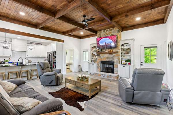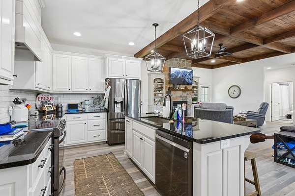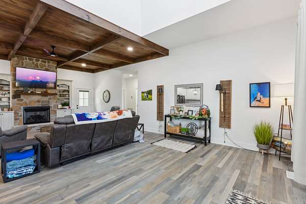 Welcome to this beautifully maintained 3-bedroom, 2.5 bath home, offering both comfort and versatility. Inside, you'll find a dedicated office and a large bonus room that can easily serve as a fourth bedroom--perfect for growing families or hosting guests. The open-concept kitchen features stunning granite countertops, high ceilings with rustic wood accents, and a cozy fireplace that adds warmth and charm.