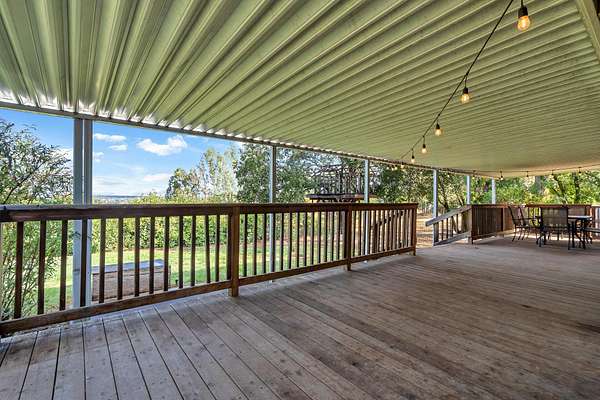 Step outside to the large rear deck, ideal for outdoor dining or simply soaking in the panoramic views. The property also features owned solar, a detached garage, and abundant space for gardens, animals, or future projects.