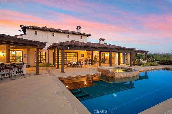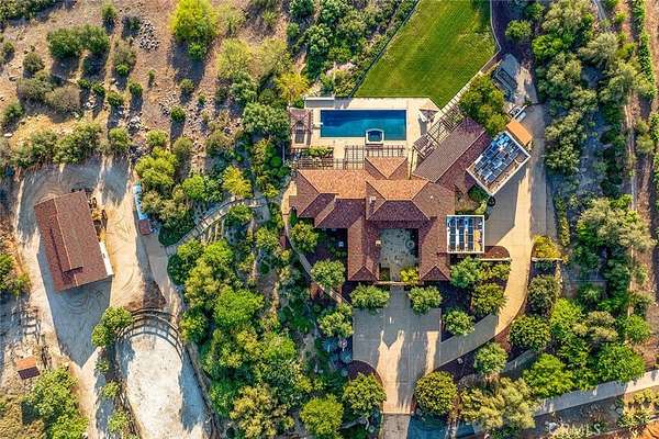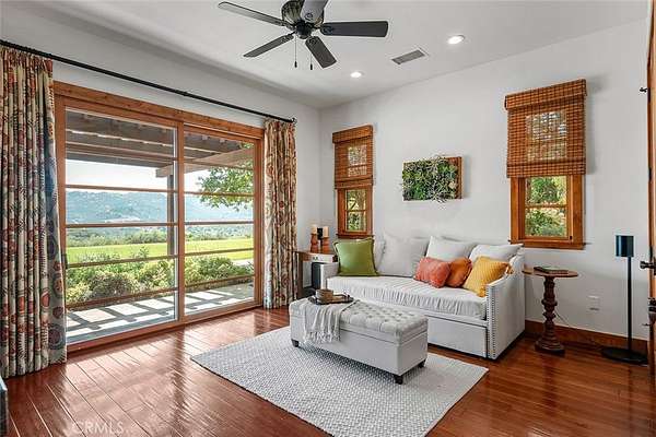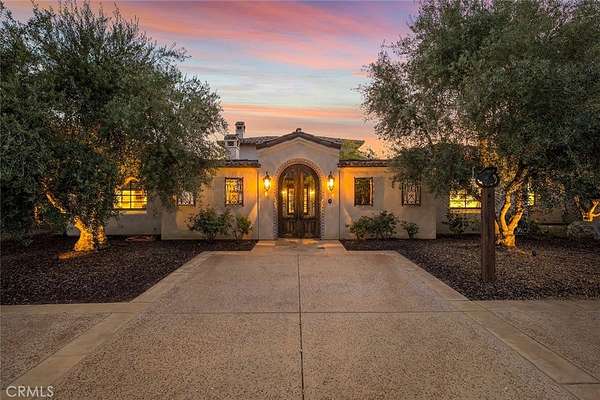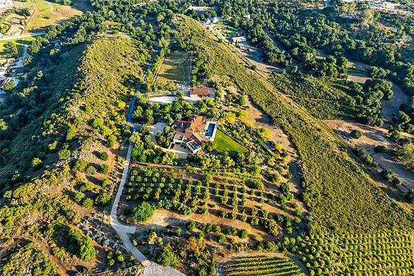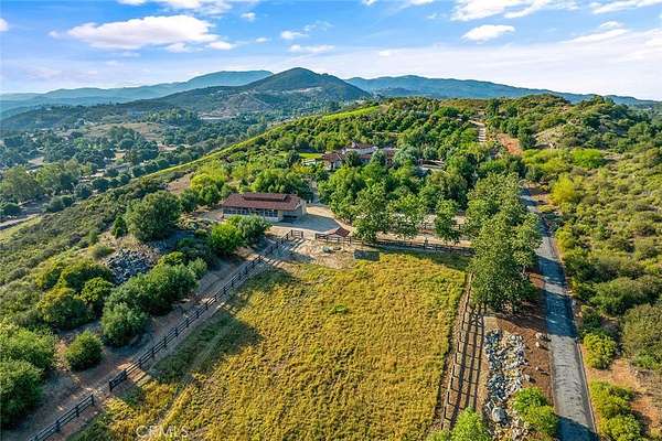 Welcome to "HARMONY RANCH" - A SANCTUARY...AND CROWN JEWEL OF THE SANTA ROSA PLATEAU! Masterpieces with these amenities are not only unique in this marketplace, but only rarely come to market. To build this exquisite estate again would require years in the creative process, lengthy custom construction, expansive usable land with panoramic views, and would cost millions over this asking price! Lived in very gently since its inception, it is available now to the most discriminating buyers. THIS IS A LIFESTYLE!...From the moment you enter the security gate, the ambiance of 28+ private acres envelopes you, leading you on a peaceful journey past mature landscaping, equestrian pastures, a custom expandable 4-stall barn, half bath, chicken coop with AC & lighted arena to the exquisite 5-BD single-story Mediterranean home, flanked by mature olive trees and adorned with an authentic courtyard with Spanish-tiled fireplace, fountain & covered seating. Drive further to find a charming vineyard, prolific & diverse orchard & second access gate. Step inside the luxurious estate to find upscale details throughout, including high-end flooring, quality custom windows & doors, top-of-the-line appliances, Taj Majal Quartzite counters, designer fixtures, beamed ceilings, recently installed wifi indoor/outdoor sound system, wifi thermostats & security, 2 primary suites - each with exterior access and one with a fireplace, soaking tub with view, steam shower & additional outdoor half bathroom/shower. The 2 garages with fresh epoxy flooring provide room for 5 cars, plus workspaces. Entertain in the stylish backyard with 100% privacy, a sprawling grassy lawn, the 60'x20' saltwater lap pool, infinity edged spa, multiple covered seating areas, a well-equipped outdoor kitchen, custom lighting and spellbinding unobstructed views of sunsets over the neighboring Cleveland National Forest mountains. A 2nd future building pad, your own private water well for irrigation (new extensive wifi-enabled watering systems), multi-camera security system, paid-for Solar & 30kW Battery system top off the long list of amenities for this one-of-a-kind estate, which is nothing short of a SANCTUARY - CONNECTING LUXURY LIVING TO AWE-INSPIRING NATURE IN A WAY FEW GET TO EXPERIENCE! Discover the Santa Rosa Plateau: 5-ac minimum, minutes to town, miles of trails & 1000s of acres of Ecological Reserve...All less than 1.5 hours from LA, SD, OC, Palm Springs & Big Bear. *SEE VIDEO & SUPPLEMENTS FOR MORE INFO*