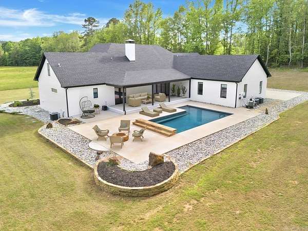 Welcome to this stunning 4,172 sq ft home built in 2022, perfectly positioned on 23.33 acres in scenic Paron, Arkansas. Situated between natural landmarks, Winona Wildlife Management Area is a short distance to the north, Ouachita National Forest is a short distance to the south, and Lake Winona is a short distance to the west--offering unmatched privacy and access to the outdoors. This custom-built home features 4 spacious bedrooms- each providing a private bathroom, an additional half bathroom, butler pantry, office and media room. Enjoy year-round relaxation in the heated pool with a tranquil waterfall feature. Additional highlights include a massive 80' x 40' shop with a 20' overhang--both the home and shop are equipped with energy-efficient spray-foam insulation. The home also includes unfinished, floored attic space with the potential to add even more finished square footage. Outdoors, you'll find two large ponds, abundant wildlife, and beautiful Trace Creek running north to south through the property--making it a true retreat for nature lovers. Get ready for fall hunting season and bring the ATV's! This property has it all with no restrictions!