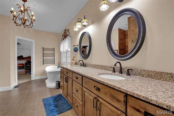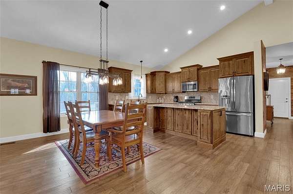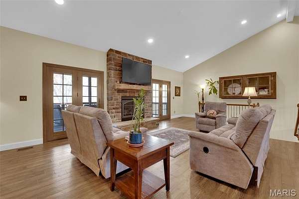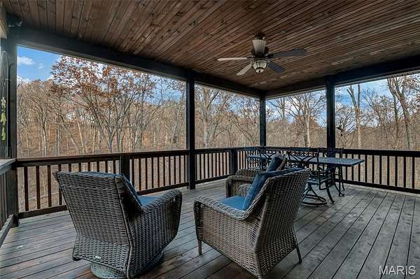 Wooded 5 Acre St Louis County Wildwood property with custom, 2900 SqFt, 2014 built home including 4 bed 3 bath 2 car garage and walk out lower level. Enter great room with engineered wood floors, recessed lighting, vaulted ceiling open to kitchen, dining and living room. Living room is centered by stone fireplace flanked by two sets of French doors opening out to large covered deck, with grand views into forest. Spacious kitchen includes stainless appliances, granite countertops and a large center-island. Ample kitchen pantry and laundry on the main. Primary bedroom suite boasts vaulted ceiling and fabulous primary bathroom. Split bedroom floorplan, means 2 additional bedrooms and full hall bath are on the opposite side of the main level from primary. Lower level is partially finished 9' pour with additional great room, small bar area, bedroom, bathroom, abundant storage with walk out and private hot tub area. Decor is neutral with barn wood accent walls and other stylish details. Picturesque in every direction. Seller would be grateful for offers to arrive before Sunday 11/23/2025 at 8PM, not to expire before Monday 11/24/2025 at 8PM.