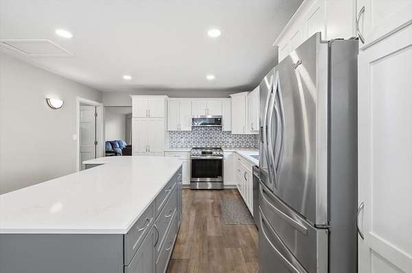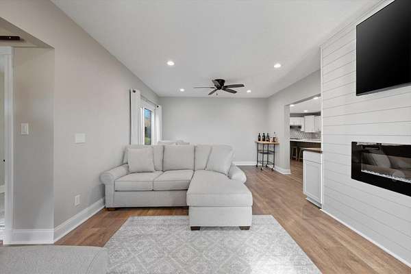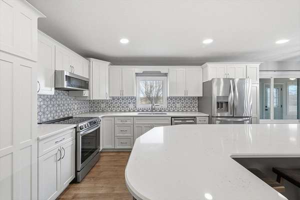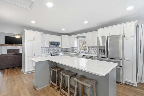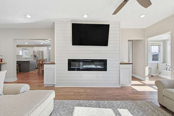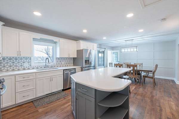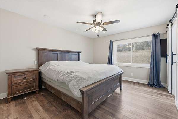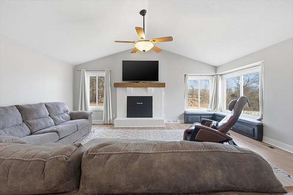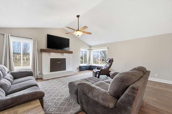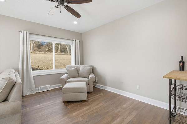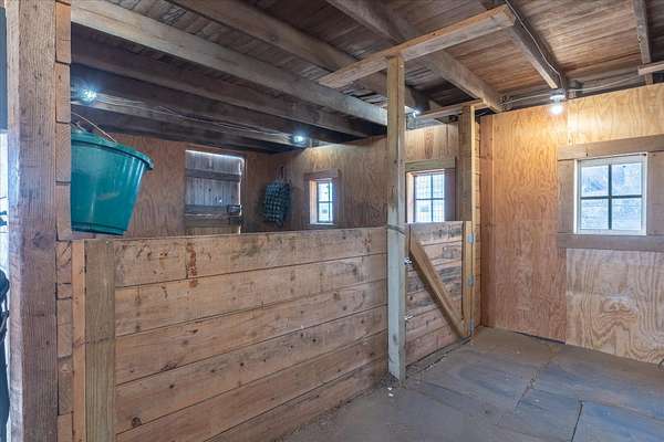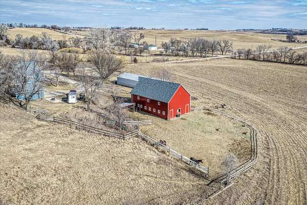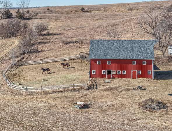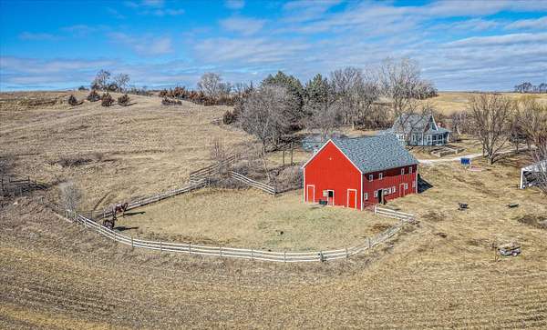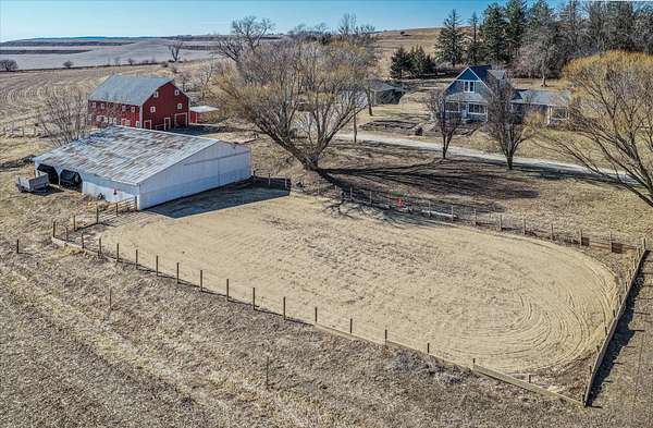 Beautiful updated home on 12+ acres. The heart of the house is the kitchen featuring white cabinetry, stainless steel appliances, and a massive center island perfect for entertaining. Flow seamlessly into the inviting living area, anchored by a brick fireplace and vaulted ceilings. Relax in the separate family room featuring a shiplap accent wall with fireplace. The main level offers convenient single-level living potential with a primary bedroom suite, a second bedroom, and main-floor laundry. Property includes an oversized two-car detached garage, an extra-large barn with four stalls (perfect for horses and livestock,), a large machine building, and a 60*120 outdoor arena. Pasture is completely fenced with electrical fencing. Owners have completely updated everything in the last 5 years Property includes an oversized two-car detached garage, an extra-large barn with four stalls (perfect for horses and livestock), a large machine building, and a 16*20 outdoor arena. The pasture is completely fenced with electric fencing. Owners have updated nearly everything inside and out in the last five years!