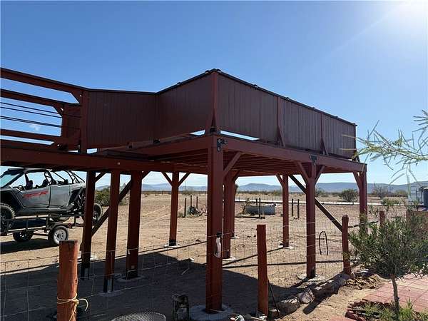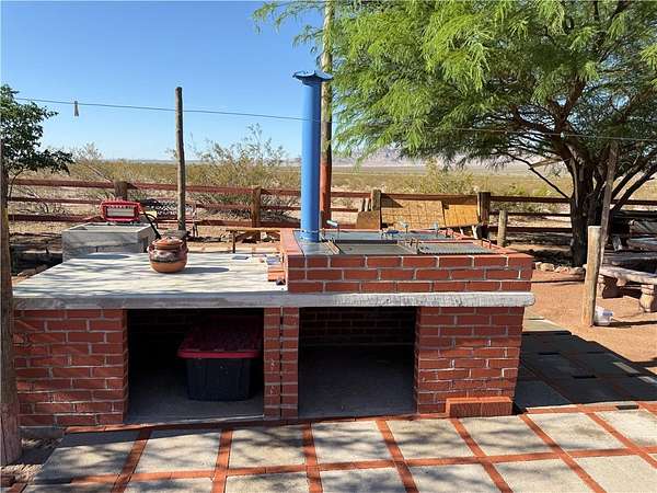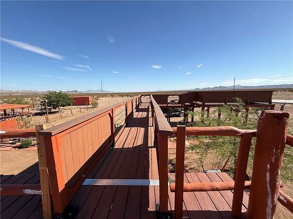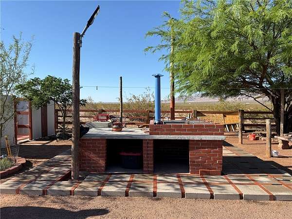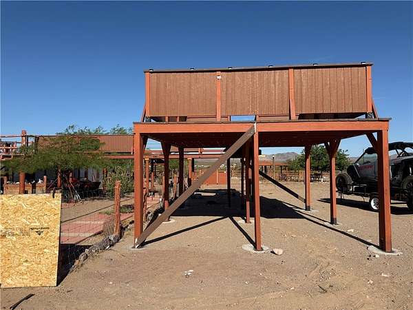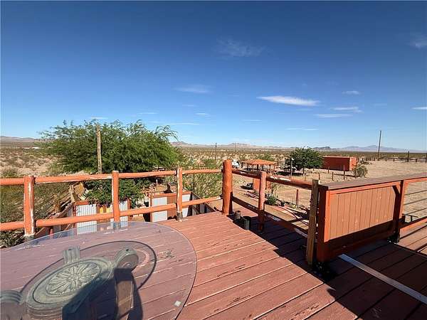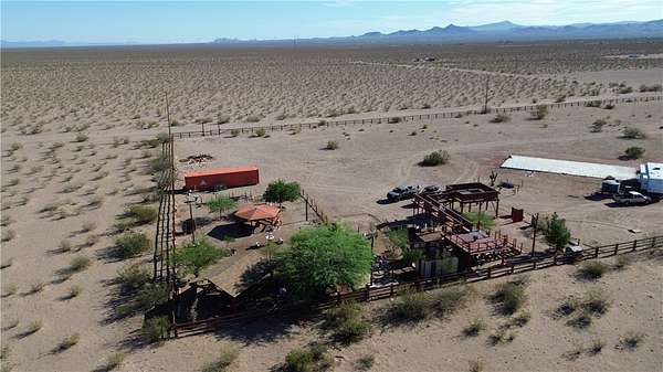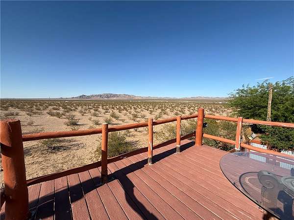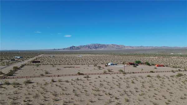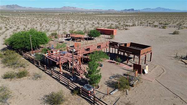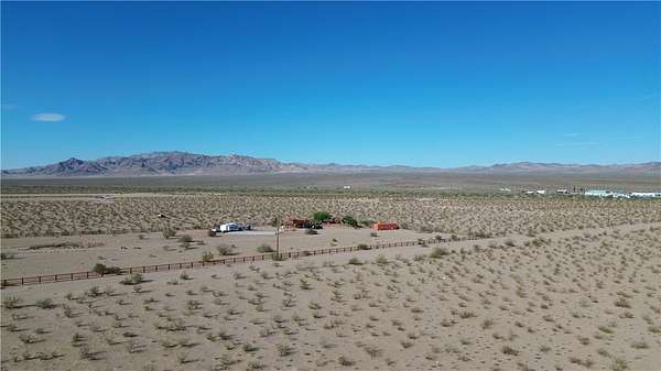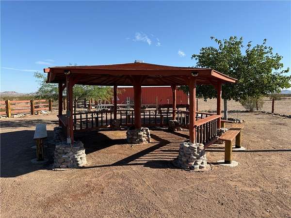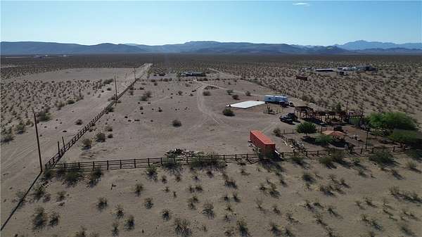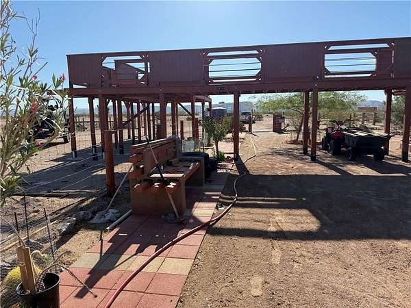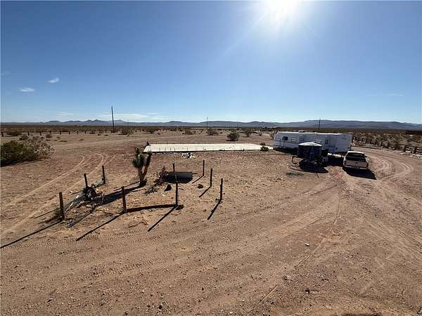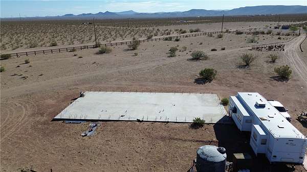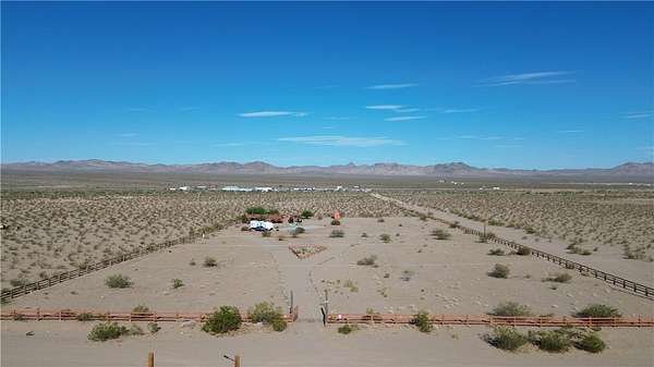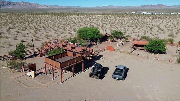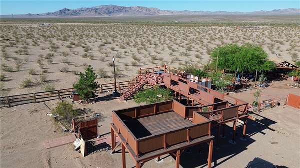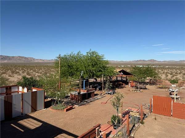 An Oasis in the Desert And That s Just the Beginning! This incredible 5-acre parcel offers everything you need to start living your dream right away. Featuring electricity, a shared well, and septic system, the groundwork is already in place for comfortable desert living. Included with the property is a 1-bedroom travel trailer, perfect for weekend getaways or as a place to stay while building your dream home. A 2100 sq ft concrete slab foundation has already been poured with some plumbing installed and county-approved home plans are available from the seller. The entire property is fully fenced with sturdy wood pillars set in concrete, with additional inner fencing for pets, gardens, or other uses. Outdoor living is a breeze with multiple covered decks, two of which are connected by a charming bridge ideal for watching breathtaking desert sunsets. Covered parking as well Entertain guests in the spacious covered dining area, complete with built-in table and benches, electricity, and a grilling station. There are also cozy, private seating nooks throughout the property perfect for relaxing or stargazing. A large storage container is included to safely store your tools and equipment. Lovingly developed by the owner over time, most of the structures are permitted, and every element reflects pride of ownership. Whether you're looking for a weekend retreat or a full-time desert homestead, this unique property is ready to welcome you home.