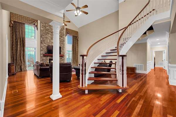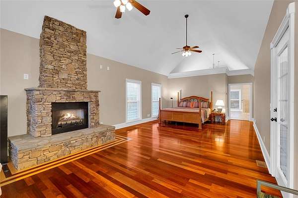 - Bath In Primary Bedroom, Bathtub, Bookcases, Built In Features, Cable Tv, Cathedral Ceilings, Ceiling Fans, Central Vacuum, Dual Sinks, Fireplace, High Ceilings, Jetted Tub, Main Level Primary, Pull Down Attic Stairs, Quartz Counters, Separate Shower, Sitting Area In Primary, Smooth Ceilings, Tray Ceilings, Vaulted Ceilings, Wet Bar