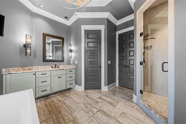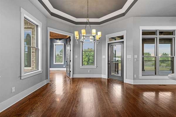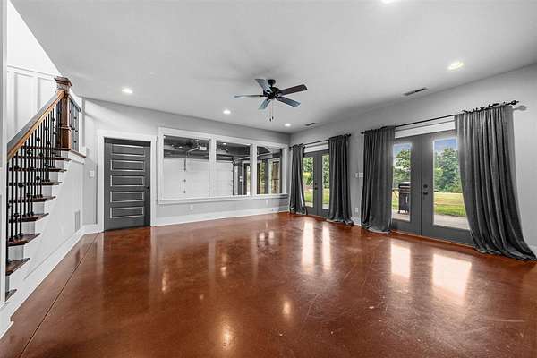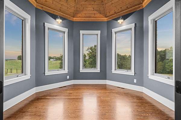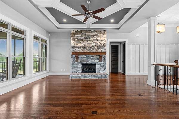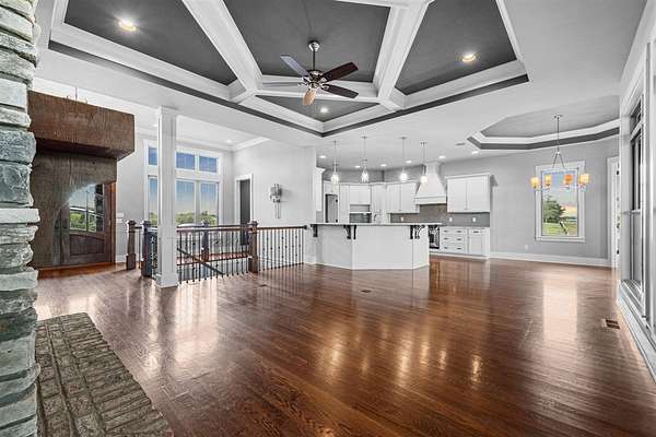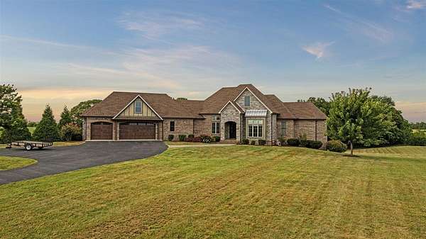 Nestled on 7 beautiful acres, this stunning 4-bedroom, 4.5-bath custom built home offers elegance, comfort, and functionality. A sweeping, spacious yard welcomes you to the property, providing plenty of room for outdoor activities, gardening, or simply enjoying the serene surroundings. Inside, the open-concept floor plan is filled with natural light and enhanced by thoughtful details such as coffered ceilings, designer selections and a cozy fireplace, creating a warm and inviting atmosphere. The kitchen is designed for both everyday living and entertaining, featuring a large walk-in pantry and easy flow to the dining and living spaces. The primary suite is a true retreat, complete with dual closets, a soaking tub, and a beautifully tiled shower. The fully finished walk-out basement expands the living space, offering a second kitchen, whole home surround sound system, and abundant storage. Perfect for gatherings or private guest quarters, this level provides flexibility for a variety of needs. Additionally the basement offers an extra finished space that can serve as a home gym, office or a secondary garage with exterior garage door access. Outdoor living is equally enjoyable with a screened porch ideal for relaxing evenings. Additional highlights include a 3-car garage, tankless water heater, and thoughtful upgrades throughout. With its expansive acreage, modern amenities, and luxurious touches, this home combines peaceful country living with upscale comfort--truly a must-see property.
