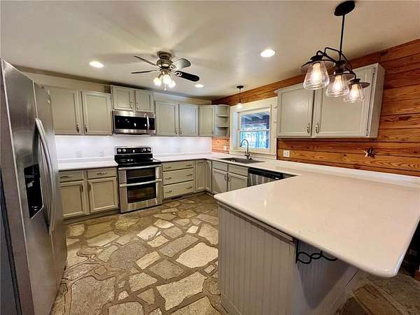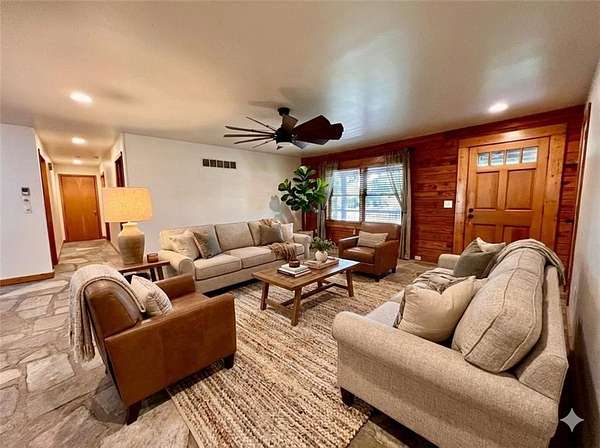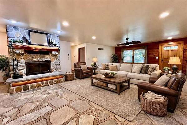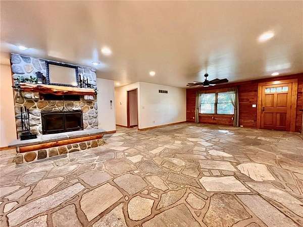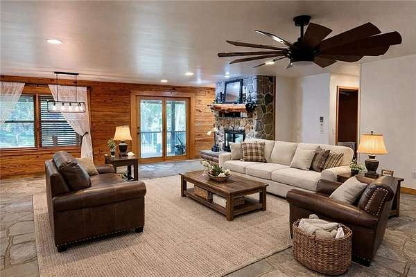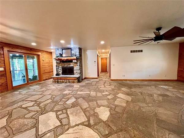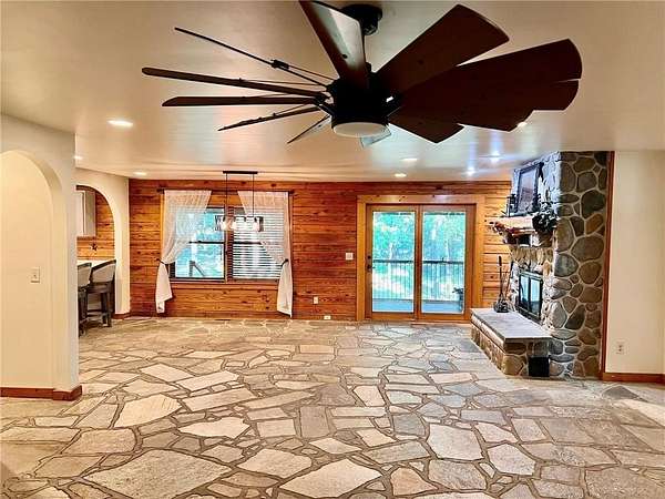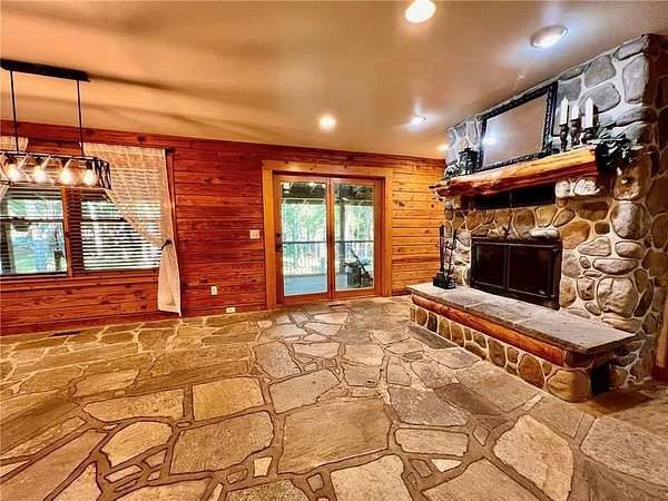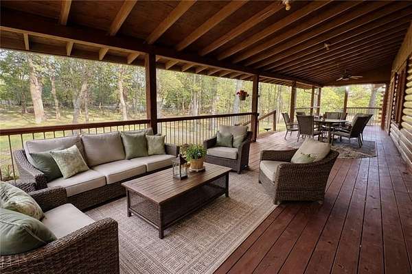Est $2,691/moCustom-designed LOG HOME on 12 Acres nestled in the woods. This wonderful home has possibly the LARGEST COVERED 51-foot long DECK you've ever seen. Enjoy outdoor living on both the front and back covered decks. The Colorado Quartz Stone Floor gives this remarkable home so much beauty. Remodeled kitchen is open to the hearth area with a custom-built stone fireplace with a Log Mantel you've got to see for yourself. HVAC is approx 4 yrs old. Newer garage door. This beautiful 12 acres comes with your own Pond! the Pond is fully stocked with bass, catfish and bluegill. TWO COVERED DECKS!