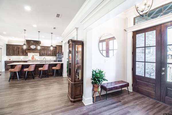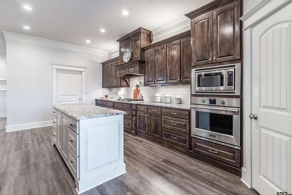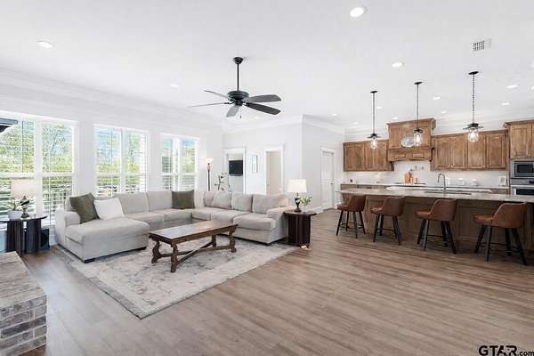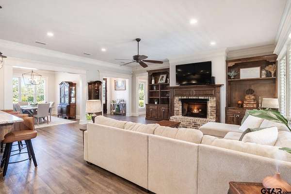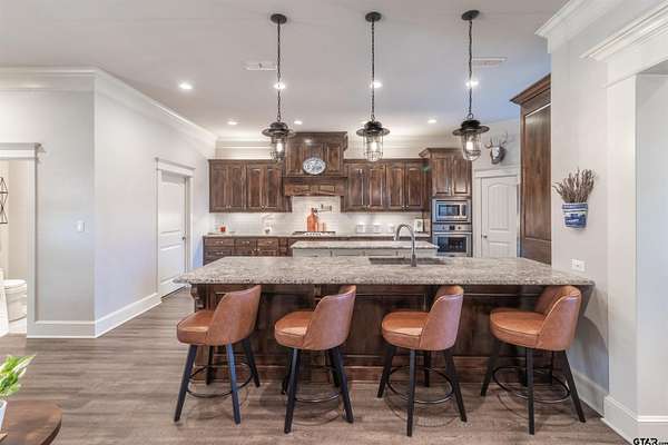 Situated on a spacious 2.77 acre lot in Iron Mountain Estates, this property offers generous space, privacy, and open views. The expansive tract provides flexibility for a variety of outdoor uses, including the potential for a pool, garden, shop, or other personal improvements. The home features a well designed and functional layout with open living, dining, and kitchen areas that flow together seamlessly. The kitchen includes a large island, gas cooktop, built in oven, pantry, and abundant cabinetry, offering both efficiency and storage. A dedicated utility room and ample storage areas support everyday functionality. Additional features include 200+ amp electrical service, underground utilities, a security system, and smoke detection devices. Exterior improvements include a covered patio, guttering, sprinkler system, partial fencing, and a concrete driveway with a side entry garage, contributing to a clean and well maintained appearance. Utilities include Lindale Rural Water, Suburban Propane with a buried tank, TXU Electric, and an aerobic septic system. School information is available through public records. The location provides convenient access to Highway 69, shopping, dining, and medical facilities.
