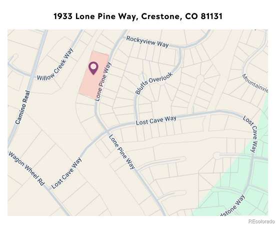 From County Rd T take a right on Camino Baca Grande then a right on Camino Real (Two Trees) then a left on Wagon Wheel then a left on Lost Cave Way then a left on Lone Pine Way and land is on the left.