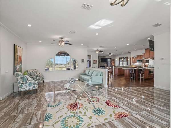 Gorgeous 30+ acre horse farm with custom build main house, guest house, barn, 2 apartments, & 14 paddocks! This 30 acre property is well located less than 10 mins to the HITS show grounds & 20 mins to the World Equestrian Center & has two separate gated entrances. The elegantly appointed 3 bedroom/ 3 full bath plus office main house has a 3 car attached garage & many high end upgrades throughout & is accessed through a gated entry. The gourmet kitchen boasts stone counter tops, double ovens, wine frig, 6-burner gas cook top, large island & huge walk-in pantry. The primary bedroom is over- sized with sitting area & direct access to the covered patio. The en-suite 5- piece primary bathroom has a generous walk-in shower & the adjoining walk-in closet is oversized with built-in shelving & a large island w/ cabinets. The adjacent large detached shop/garage has water & electric & the property boasts a propane generator, 500 gallon propane tank, tankless propane water heaters & an exterior camera system. The guest house & barn have a separate gated entry & the entire farm is fully fenced. The 2-bedroom guest house is also concrete block construction, has 2 full bathrooms, over-sized primary bedroom walk in closet, has been updated with tile flooring throughout, & kitchen was updated with newer soft close cabinets & stone counter tops. The well-designed block barn was built in 2012 with many high-end amenities including 6, 12' x 12' stalls with the comfort stall systems & auto waters, 2 wash stalls with hot water, roll up hurricane doors, grooming stall, & a tack room & feed room. There is also a separate hay room. There are two barn apartments- a 1 bedroom/ 1 full bathroom & a studio with private bathroom. The paddocks have water & shelter in each & there are also 2, 50-amp rv hook ups & a large pole barn with electric & water. The property has 4 wells that are connected w/ water softener systems. The property consists of 3 parcels & can also be purchased as two separate parcels with a house on each- see listings OM713622 & OM713620.