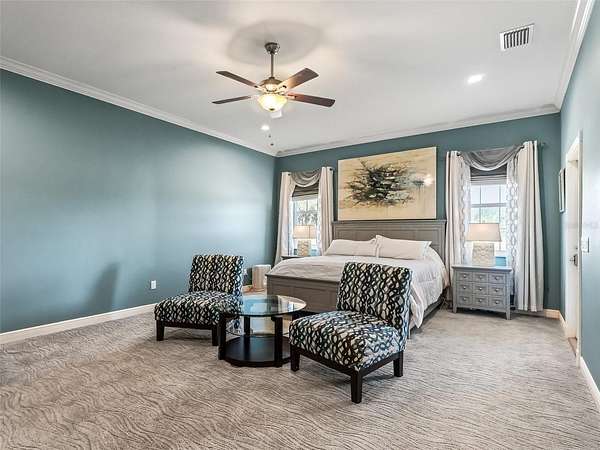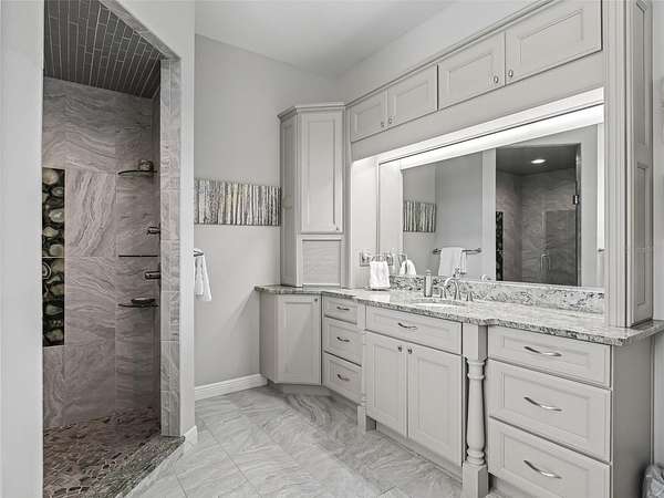 - Ceiling Fans(s), High Ceilings, Primary Bedroom Main Floor, Split Bedroom, Stone Counters, Walk-In Closet(s)
