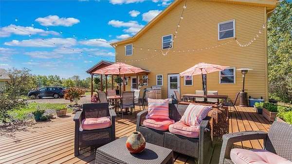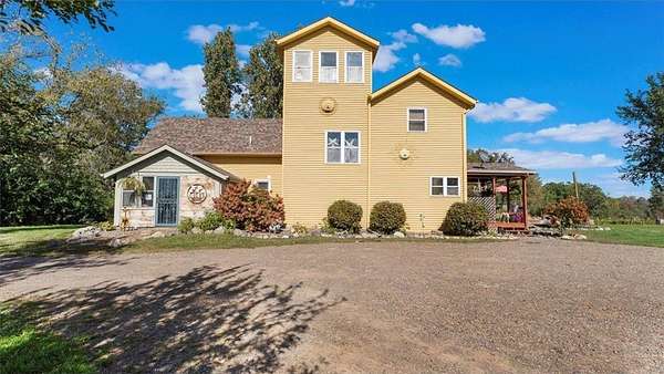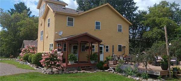 The home blends historic character with modern comfort. Originally built circa 1920, a substantial 2005 addition delivers a spacious and functional layout with 3 bedrooms, 2 baths, a gourmet kitchen with high-end appliances, a converted attic sunroom with panoramic views, and inviting living spaces throughout. Recent updates include a new main-floor shower, new well (2023), furnace (2022), garage roof (2023), house roof (2018), new deck, barn improvements, chicken coop, updated paint, flooring, fixtures, and enhanced drainage with a new culvert.