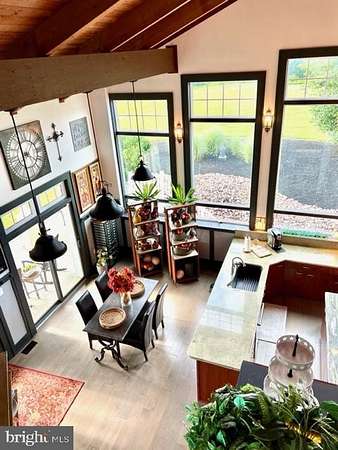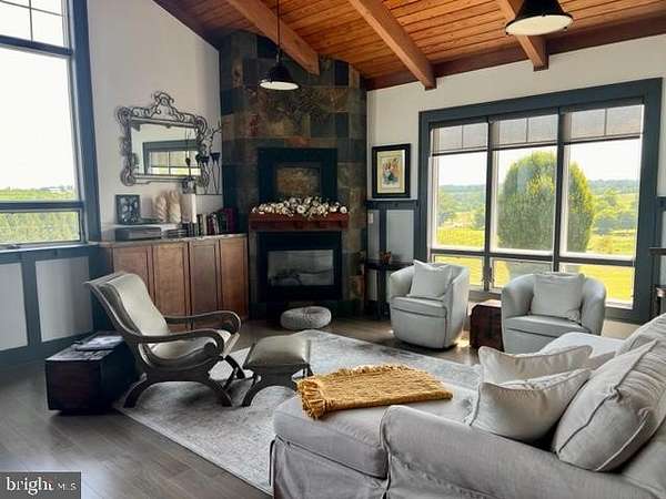 BACK ON THE MARKET AT NO FAULT OF THE SELLER Stunning Custom Contemporary on Sprawling Acreage! Nestled on a generous 4.74-acre lot at 1934 Quicksburg Road in Quicksburg, VA, this spectacular custom contemporary home offers over 4,000 square feet of finished living space with the potential for even more! Built in 2006, this residence boasts exceptional features and breathtaking views. Step inside to discover gorgeous Hickory Hardwood floors that highlight the expansive living area and a breathtaking kitchen. Dramatic Wainscoting welcomes you down the hallway and into the kitchen and dining area. The kitchen is a chef's dream with tons of granite counter space, Guggenheim Marble Island, abundant natural lighting, and beautiful 180 degree mountain views of the Alleghany and Blue Ridge Mountains, framed by a soaring wall of windows. These windows stand 10 feet tall at the centers highest point. It seamlessly opens to a dining area and a spacious gathering room, which is overlooked by a versatile bonus room in a loft. The luxurious primary suite provides a private retreat with deck access, a large walk-in closet, a comfortable sitting area by the fireplace with gas logs, and a spa-like primary bath featuring a jet tub and a separate shower. There are also 3 additional bedrooms and 3 more full bathrooms, offering plenty of space for family and guests. Additional highlights include a beautiful den perfect for a home office or dining area. In this space you will find art lights that can showcase your favorite masterpieces. Downstairs you will find a spacious exercise room to help you stay active. A large workshop for woodworking or crafting on the lower level for easy access from the outside. The home also features an attached 3-bay garage, a welcoming front porch, a relaxing rear porch, and a deck where you can soak in the picturesque surroundings.