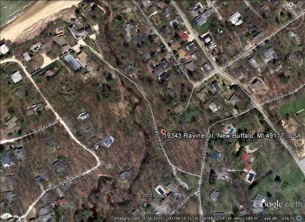 US 12 West of New Buffalo to Grand Beach subdivision, Royal Ave to Station Rd, right to Crescent Rd, left to Ravine Dr, to sign to property
