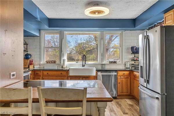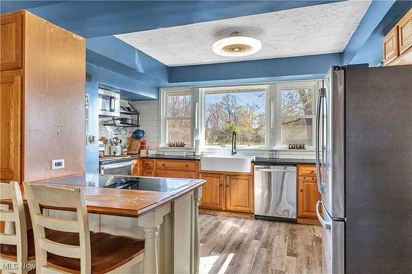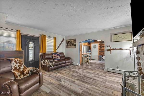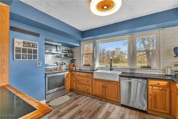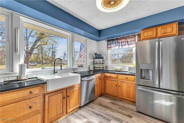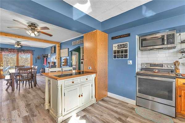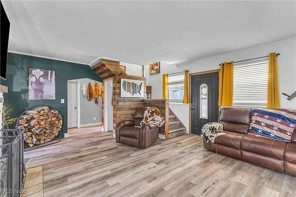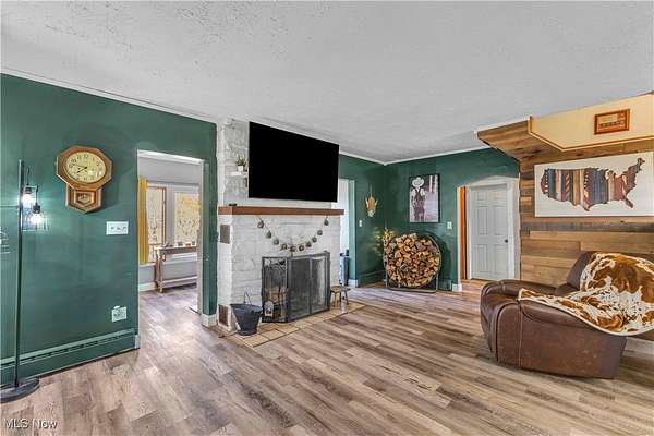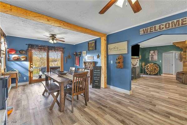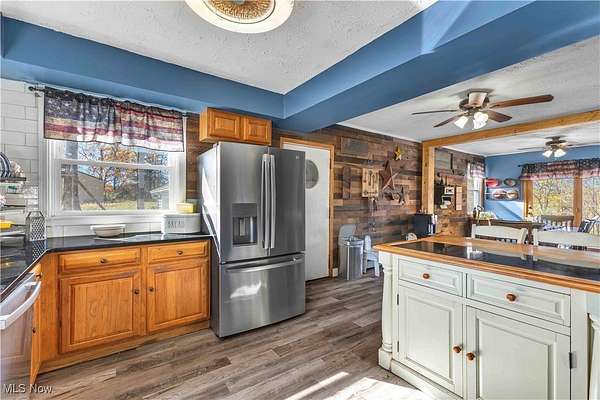 Step into a world of serene beauty with this 4-bedroom, 2-bathroom home, thoughtfully designed to blend modern comforts with rural charm. Nestled far back from the road on 8.14 private acres, this property promises an idyllic lifestyle surrounded by nature and the West Branch of the Black River. Gather in the living room, where the warmth of a wood-burning fireplace with new flue, brickwork, and chimney cap(2024) creating a cozy ambiance that ensures the integrity of the fireplace for years to come. Culinary enthusiasts will delight in the updated(2023) kitchen's granite countertops, farmhouse sink, ample storage, and large window offering breathtaking views, complemented by sleek stainless steel appliances. Enjoy meals in your dining room(shiplap wall 2023) while gazing out the back slider on to your deck(2023) for more incredible views. The first-floor master suite is a true sanctuary, boasting a brand-new master bath 2025(with new subfloor) and the convenience of a laundry area within the expansive walk-in closet. One more bedroom on the main floor with the others 2 upstairs. Outdoors, adventure awaits with a new greenhouse(2025), and an outbuilding. Thrill seekers will enjoy the zip line, while the tranquil pond stocked with non-predatory fish offers a peaceful escape. This home features a new roof and siding(2024), an attached garage, and a new back deck perfect for entertaining. The fenced-in areas, adorned with solar lights, enhance the property's charm. With newer electrical and HW tank(2023), along with new septic lines(2025), this home stands ready to offer comfort and reliability for years to come. Don't miss your chance to own this captivating country retreat!