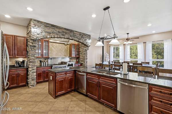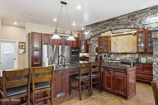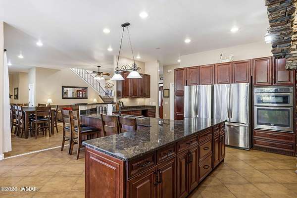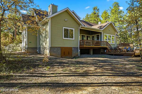 Exceptional Space, Income Potential, & Mountain Living in the Heart of Lakeside! Unmatched value meets versatility in this 5,250 sq ft retreat, set on 2.5 treed acres. Whether you're looking for a full-time residence, second home, or investment opportunity, this property delivers on every level. Designed for both comfort & entertaining, the home has 5 bedrooms, 3.5 baths, & 3 living spaces. The main level includes the kitchen, primary suite, two additional bedrooms, a full bath, powder room, laundry room, & two living areas. At the heart of the home is a truly standout chef's kitchen, complete with a commercial-grade 6-burner range with double ovens, griddle, two refrigerators & dishwashers, & extensive prep & storage space. This is a kitchen built for large groups or hosting at scale. Upstairs, you'll find an additional living area or game room, along with two more bedrooms & a full bathroom. Function meets convenience with multiple laundry areas, including a large dedicated laundry room plus additional hookups in the primary suite & guest bath. Step outside to enjoy the best of mountain living: a fully fenced backyard with low-maintenance privacy fencing, expansive Trex decking, & a large paver patio. The property also includes an oversized 3-car garage, circular driveway, & plenty of room for additional parking, toys, or future expansion. Currently operating as a successful short-term rental, this home offers immediate income potential, with the option for a new owner to transfer existing bookings--or simply keep it all to yourself & enjoy the space, privacy, & lifestyle. Home comes fully furnished & turn-key. Rare combination of size, acreage, location, & flexibility--this is a standout opportunity in the White Mountains. Seller has priced home very well for a fast sale.