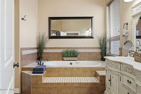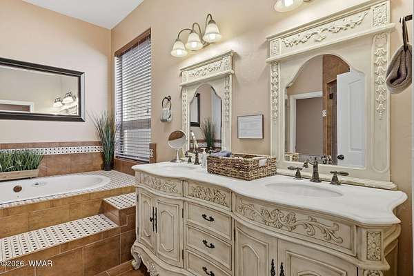- Double Vanity, Full Bath, Kitchen/Dining Room Combo, Master Downstairs, Pantry, Shower, Split Bedroom, Tub, Tub/Shower, Vaulted Ceiling(s)