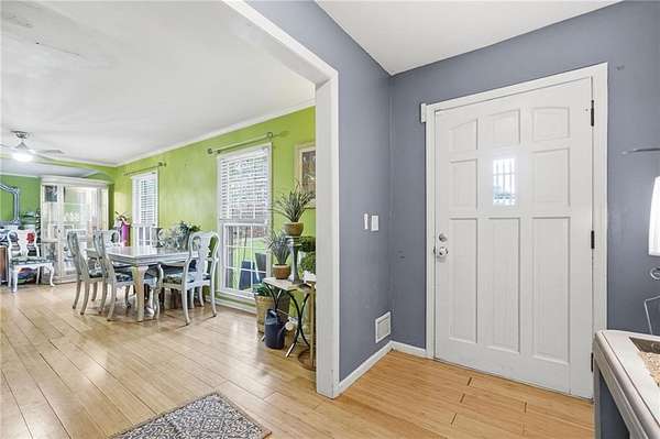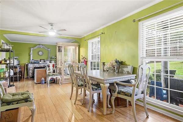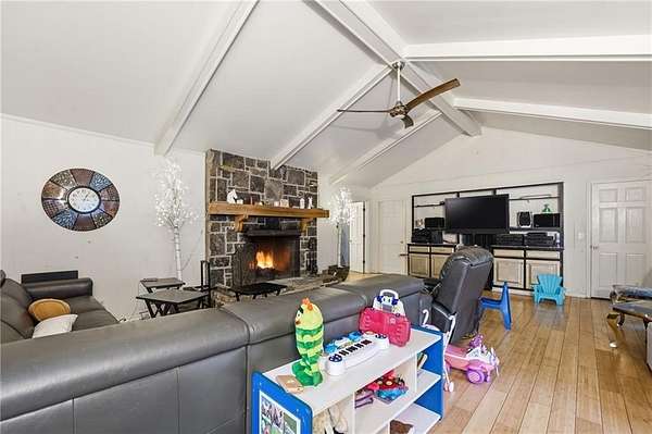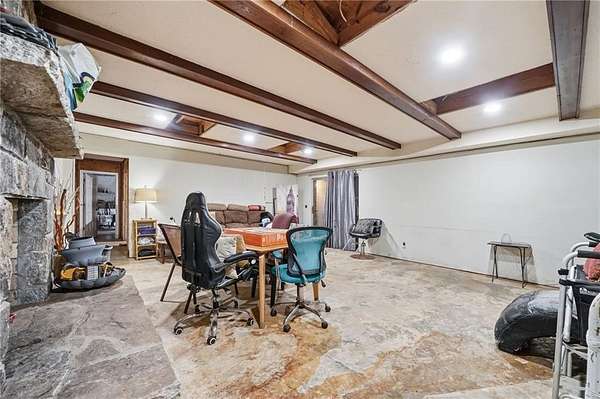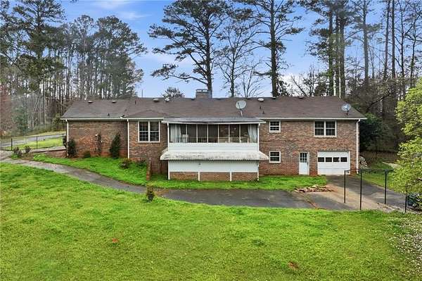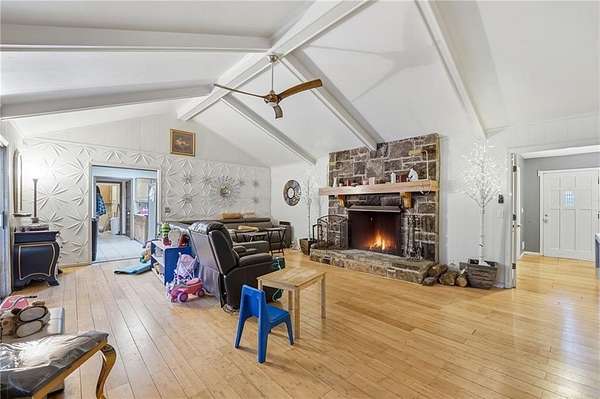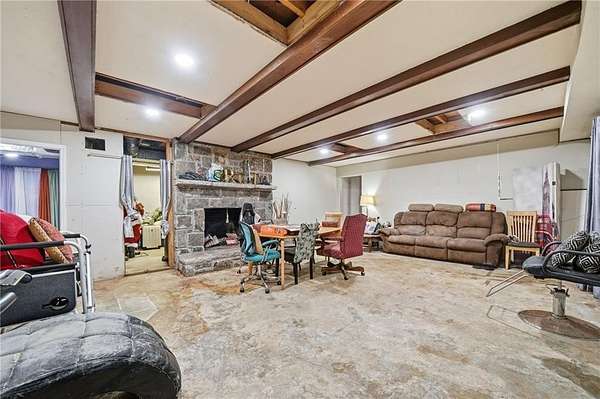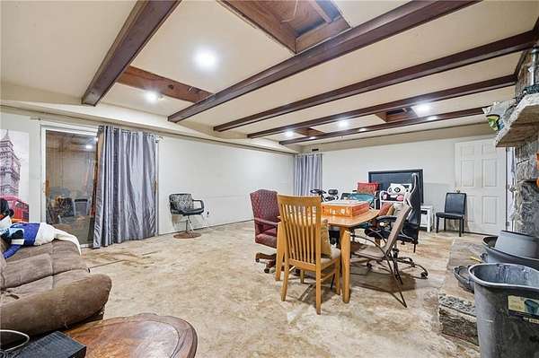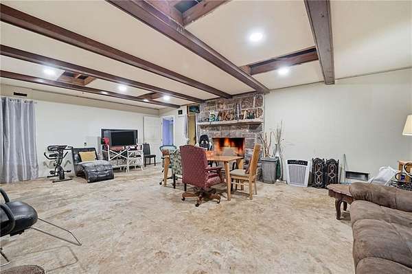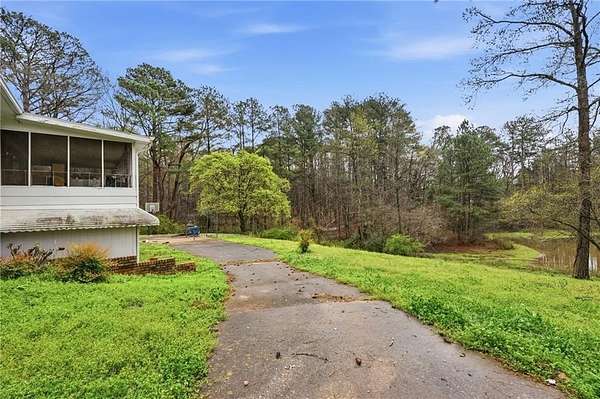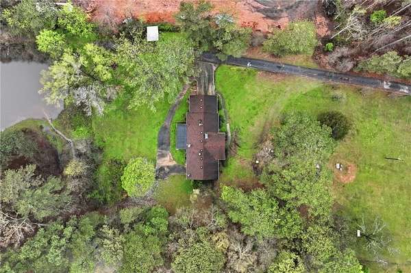 Classic brick ranch with basement set on a picturesque, tree-lined lot in Conyers, offering space, character, and timeless charm throughout. Inside, you're welcomed by expansive living areas highlighted by vaulted ceilings, exposed beams, and a stunning floor-to-ceiling stone fireplace that serves as the heart of the home. The main level features 3 bedrooms and 2 baths, including a generously sized primary suite, along with a formal dining room filled with natural light and warm hardwood flooring that flows through much of the home. The kitchen offers abundant cabinetry, ample counter space, and a functional layout with views into the living areas, ready for everyday living or your personal touch. Large windows throughout bring in natural light and showcase the peaceful surroundings. The basement provides incredible flexibility with an additional bedroom and full bath, a spacious secondary living area with its own fireplace, and exposed beam details that add rustic character, while other areas remain unfinished for storage, workshop space, or future customization. The garage area adds even more functionality. Outside, enjoy a long private driveway, mature trees, and a gently rolling yard overlooking a small pond, creating a serene, tucked-away feel while still being conveniently located. Just a short drive to I-20 and Highway 138, this property combines privacy, space, and accessibility in one unique offering.