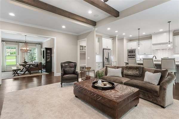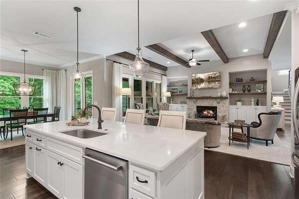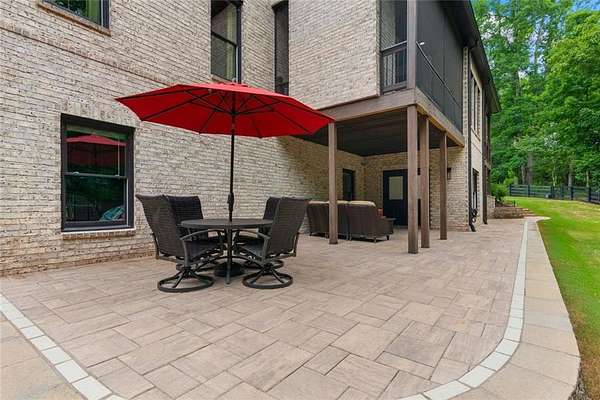 Dreaming of your own tennis court, basketball court, or just room to roam? Or a pool, this yard is perfectly suited for one, as shown in the virtual pool rendering. This gorgeous Milton modern farmhouse sits on 3.3 acres at the end of a quiet cul-de-sac. Inside, soaring wood beams, a wall of windows, and custom built-ins frame the fireside family room. The bright, open kitchen wows with quartz counters, custom cabinetry, and a walk-in pantry. Around the corner, there's a spacious drop zone-perfect for keeping life organized, with a cubby for everyone! Upstairs offers the ultimate layout-three ensuite bedrooms, a media room, and a dreamy primary suite that feels like a retreat, complete with a spa bath and custom closet. Step outside to a covered deck with fireplace, tongue & groove ceiling, and an in ground firepit perfect for smores. All-brick exterior, cedar columns, and unbeatable location-just 2 miles to dining, shopping, and top schools. You couldn't build this home today at this price-don't let it slip away.