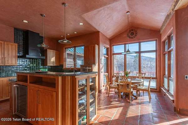 Set on 6.4 acres across two parcels, this exceptional Alta residence offers rare privacy, abundant light, and cozy mountain luxury. Wrapped in mature landscaping with no neighboring homes to interrupt the view, the property feels like a true mountain hideaway-private, peaceful, and just moments from adventure and amenities. The 3,340-square-foot, two-story home captures stunning mountain and valley views and features a warm Southwest/California-inspired aesthetic with timeless finishes. Offering a serene primary ensuite with jetted tub, an ensuite guest room, third guest room and a flexible office/bonus room, there is plenty of space for family or guests. In-floor radiant heat, a well-appointed kitchen with Viking and Kenmore appliances, wine storage, and an oversized heated two-stall garage enhance mountain comfort. Spring Creek borders the property, adding to the tranquil setting. Ideally located minutes from Grand Targhee, Driggs, Teton Canyon, and trail systems this is a rare mountain sanctuary.