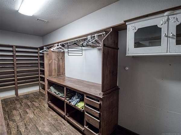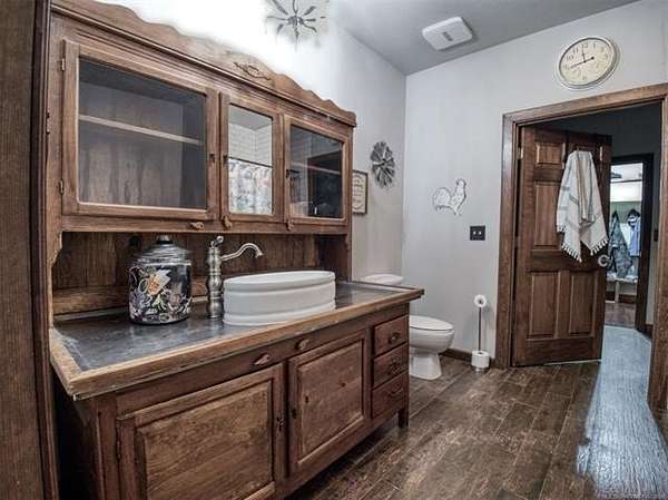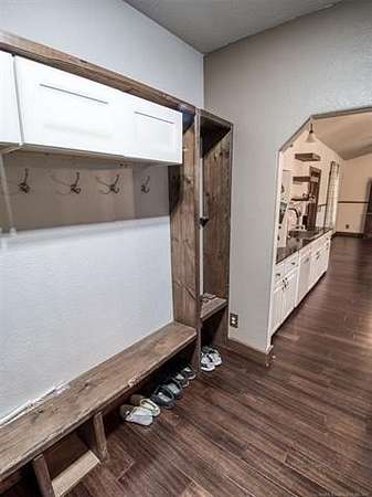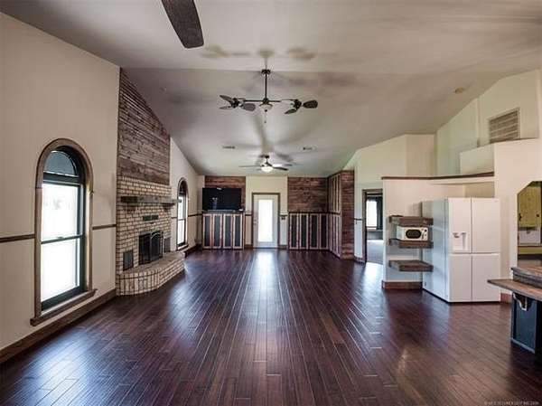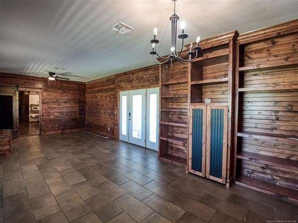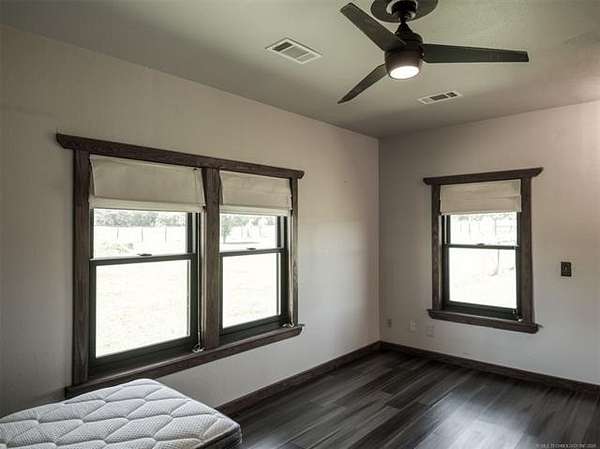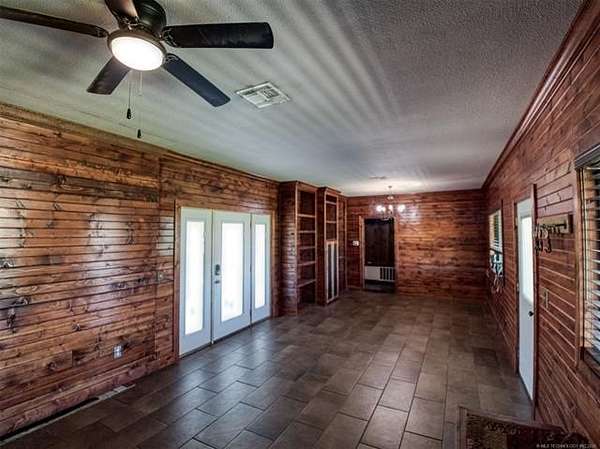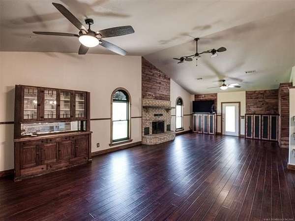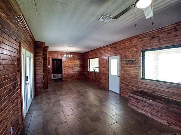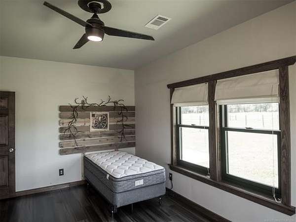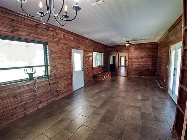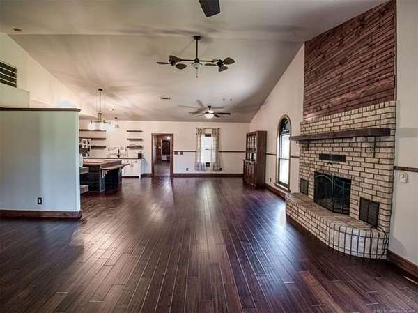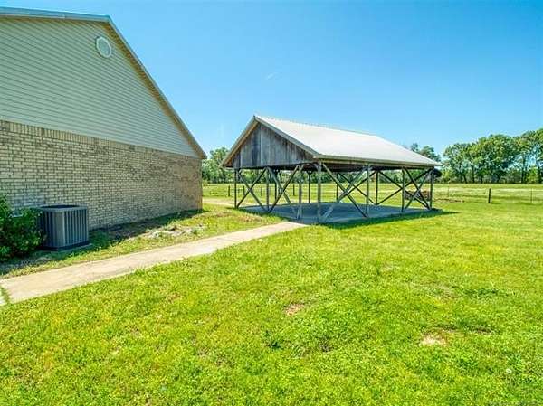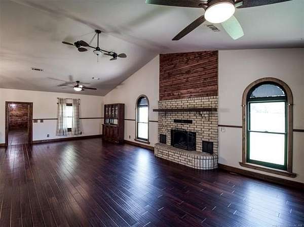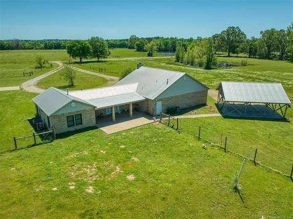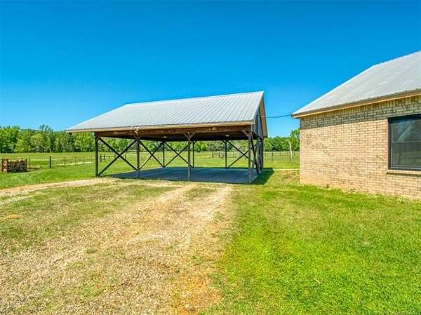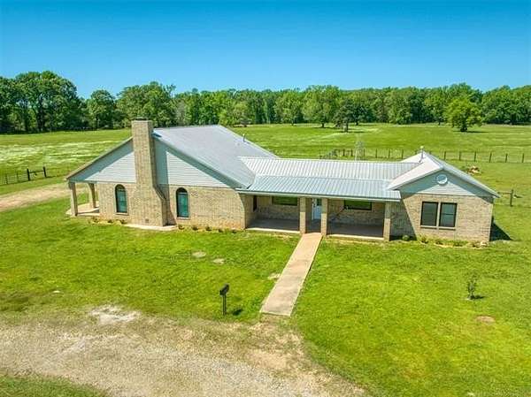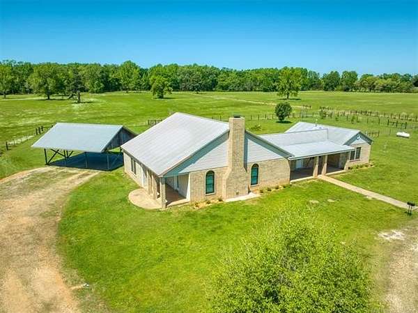Experience the best of country living with this 3 bed, 2.1 bath home situated on 40 acres MOL in Antlers, Oklahoma. Inside, the home features an expansive open-concept layout with vaulted ceilings, rich wood accents, arched architectural details, and a striking brick fireplace. Large windows throughout provide abundant natural light and showcase the surrounding acreage. The kitchen and dining areas flow seamlessly into the living space, creating an ideal setup for both everyday living and entertaining. A thoughtfully designed mudroom with built-in bench and storage adds convenience and charm. The primary suite offers a spacious retreat, complete with a large walk-in closet featuring custom built-ins and an en-suite bath with dual vanities and ample storage. Secondary bedrooms are well-sized and offer flexibility for guests, family, or office space. Outdoors, the property is equipped for a variety of uses with 40 acres that are fenced and cross-fenced. Outbuildings include a large shop and a shed, providing excellent functionality for livestock, equipment, or hobby use. This property offers the space, layout, and features to support a true country lifestyle.