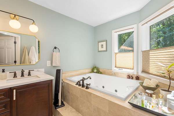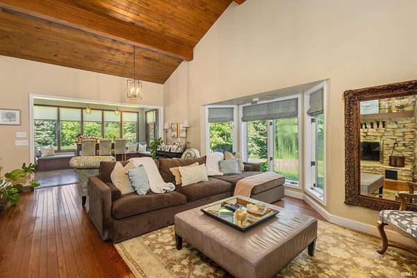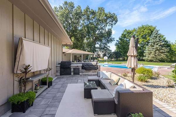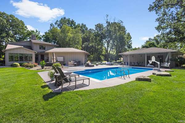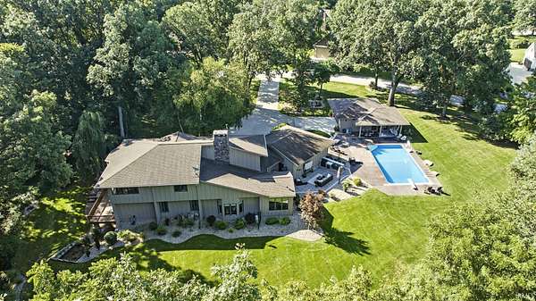 I am pleased to present an exceptional property located in the desirable Sylvan Woods neighborhood. This remarkable home sits on a private 2.37-acre lot and offers a unique blend of original charm and elegant updates. The unique architectural details of the exterior are simply breathtaking, hinting at the special character within. Featuring both an eat in kitchen and a formal dining room the main level also offers an exquisite dry bar area, a perfect space for entertaining. Floor-to-ceiling windows bathe the room in natural light. Whether you want to have a drink and gather around built-in bench seating or cozy up near the fire place in the family room , both offer a comfortable gathering space for friends and family. A dedicated home office as well as the as work out room provide the perfect sanctuary for work or quiet contemplation. And the expansive primary walk-in closet is a dream come true for even the most discerning homeowner. The walk out basement offers natural light and features a wet bar/kitchenette - ideal for casual gatherings or late-night snacks. A second fireplace adds to the cozy ambiance, while a spacious living area, a full bathroom, an additional bedroom, and ample storage provide endless possibilities. This space could easily function as a guest suite, a recreation area, Teen quarters or a combination thereof. Retreat outdoors and you will find a large inground pool with automatic pool cover, a beautiful bar area with a built in gas grill and smoker perfect for all the entertainers and barbeque enthusiasts! The patio is expansive and offers ample of space for any size of gathering. The extra detached garage serves as a pool house as well and offers convenience with a bathroom that features a rinse shower, pool storage, pool mechanicals and a large covered patio. This home is more than just a house; it's a sanctuary, a testament to quality craftsmanship, and a haven for creating lasting memories.